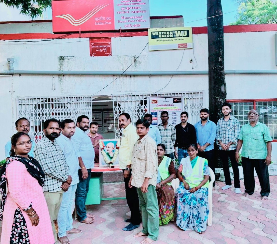 155వ గాంధీ జయంతి సందర్భంగా స్వచ్ భారత్ కార్యక్రమాలను పురస్కరించుకొని హుజురాబాద్ ప్రధాన తపాలా కార్యాలయం పోస్ట్ మాస్టర్ మరియు సిబ్బంది మున్సిపల్ కార్యాలయంలో పనిచేస్తున్న పారిశుధ్య కార్మికులను తపాల కార్యాలయానికి ఆహ్వానించి ఘనంగా సన్మానించారు. ఈ సందర్భంగా గాంధీజీ పటానికి పూల మాలతో నివాళులు అర్పించి గాంధీజీ కలలు కన్న పరిశుభ్ర భారతావనిని నిర్మించడంలో పారిశుధ్య కార్మికులు ముందు ఉన్నారని, అదే లక్ష్యంతో దేశ పౌరులందరు భాగస్వాములు కావాలని పోస్ట్ మాస్టర్ యు మహేందర్ పిలుపునిచ్చారు.