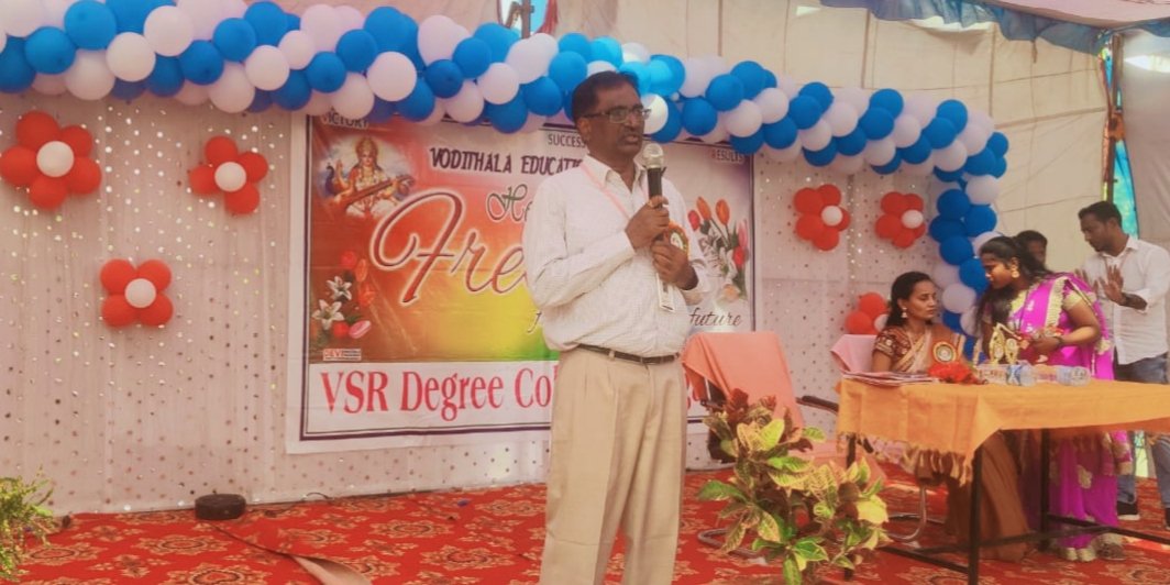 మండల యాదగిరి, స్వర్ణోదయం ప్రతినిధి హుజురాబాద్: హుజురాబాద్ మండలం సింగాపురం గ్రామంలో విఎస్ఆర్ డిగ్రీ కళాశాలలో రెండవ సంవత్సరం, మూడవ సంవత్సరం చదువుతున్న విద్యార్థులు డిగ్రీ మొదటి సంవత్సరంలో చేరిన విద్యార్థులకు స్వాగతం చెప్తూ ఫ్రెషర్స్ డే కార్యక్రమం కన్నుల పండువగా నిర్వహించారు, ఈ కార్యక్రమనికి ముఖ్య అతిథిగా హాజరైన కిట్స్ ఇంజనీరింగ్ కళాశాల డైరెక్టర్ డా”కందుకూరి శంకర్ మాట్లాడుతూ సీనియర్స్ నుండి సూచనలు సలహాలు తీసుకుని, గవర్నమెంట్ జాబ్స్ మీద దృష్టి సారించాలి, మీ భవిష్యత్తు కు డిగ్రీ టర్నింగ్ పాయింట్,మంచి మార్కులు సాధించాలి,కిట్స్ ఇంజనీరింగ్ కళాశాల పరిసరాల్లో డిగ్రీ కళాశాల ఉంటడం వలన లైబ్రరీని ఉపయోగించుకోవాలనీ, విద్యార్థులు ఉద్యోగల మీద దృష్టి సారించాలి అన్నారు. ఈ కార్యక్రమంలో ఇంచార్జి ప్రిన్సిపాల్ శనిగారపు రజిత, అధ్యాపకులు తాళ్లపెళ్లి అజయ్, పోతిరెడ్డి హరీష్, చల్లురి సతీష్ ,గొబ్బెట తిరుపతి, గాజుల శారదా, గట్టు కోమల, మహేష్, సదయ్య, బాస్కర్, రచన, విద్యార్థులు పాల్గొన్నారు.