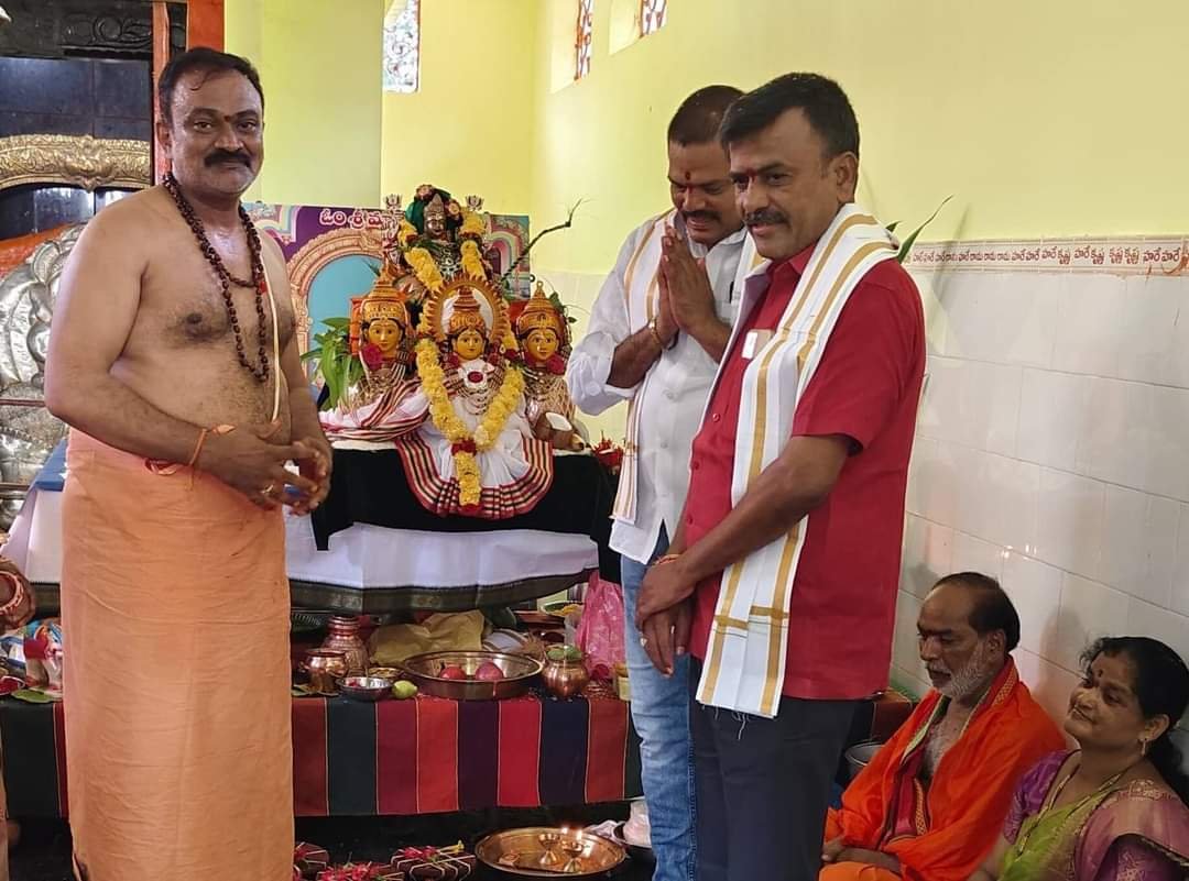 మండల యాదగిరి, స్వర్ణోదయ ప్రతినిధి హుజురాబాద్: కరీంనగర్ జిల్లా హుజరాబాద్ పట్టణ కేంద్రంలో గల పాటిమీద స్వయంభు వెలసిన శ్రీ ఆంజనేయ సహిత సరస్వతి దేవి ఆలయంలో..శరన్నవరాత్రి ఉత్సవాలు, మొదటిసారిగా ఈ సంవత్సరం నుంచే ప్రారంభం కావడం సంతోషకరంగా ఉందని ఆలయ అర్చకులు తీరుణహరి తిరుమలేష్ పేర్కొన్నారు. మొదటి సంవత్సరం మొదటి రోజు గురువారం హుజురాబాద్ మునిసిపల్ చైర్ పర్సన్ గందె రాధిక శ్రీనివాస్, ఐదవ వార్డ్ కౌన్సిలర్ అపరాజ ముత్యం రాజు.. హుజురాబాద్ పట్టణ ప్రజలు అధిక సంఖ్యలో హాజరై అమ్మవారి ఆలయంలో ప్రత్యేక పూజలు నిర్వహించారు. అనంతరం అర్చకులు అమ్మవారి నిత్యా అలంకరణ.. వివరాలు వివరించారు..