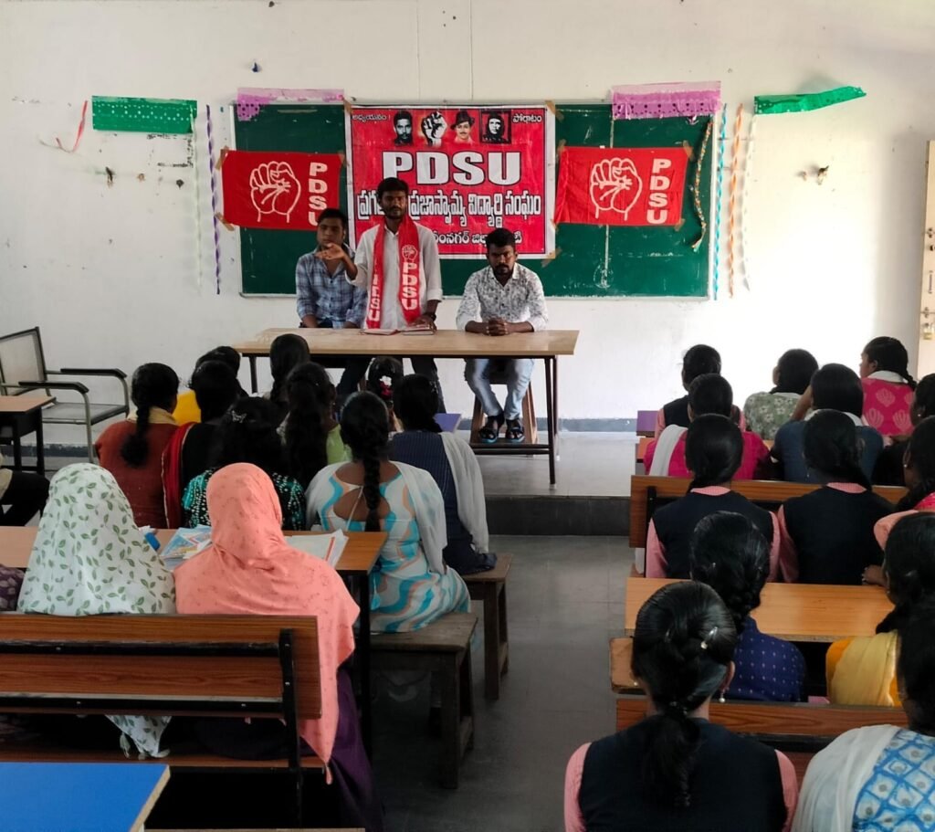 మండల యాదగిరి, స్వర్ణోదయం ప్రతినిధి హుజురాబాద్: అక్టోబర్ 24న ఉస్మానియా యూనివర్సిటీ ఠాగూర్ ఆడిటోరియంలో జరిగే PDSU అర్థ శతాబ్ద వారోత్సవాల సభ విజయవంతం చేయాలని PDSU కరీంనగర్ ఉమ్మడి జిల్లా ప్రధాన కార్యదర్శి కూతాటి రాణా ప్రతాప్ తెలుపునిచ్చారు. కరీంనగర్ జిల్లా హుజురాబాద్ పట్టణంలోని ప్రభుత్వ జూనియర్ కళాశాలలో PDSU విద్యార్థి సంఘం ఆధ్వర్యంలో మీటింగ్ నిర్వహించడం జరిగింది. ఈ మీటింగ్ లో PDSU కరీంనగర్ ఉమ్మడి జిల్లా ప్రధాన కార్యదర్శి కూతాటి రాణా ప్రతాప్ హాజరై విద్యార్థులతో మాట్లాడారు. విద్యారంగ సమస్యలపై నిరంతరం పోరాడే పిడిఎస్యు ను ఆదరించాలన్నారు. ఈ సందర్భంగా విద్యార్థులు అధిక సంఖ్యలో పాల్గొనాలని ఆయన పిలుపునిచ్చారు.