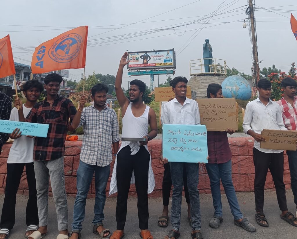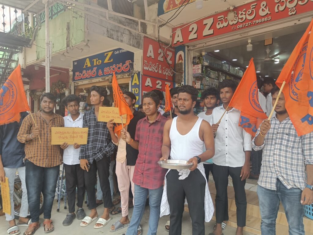 మండల యాదగిరి, స్వర్ణోదయం ప్రతినిధి హుజురాబాద్: అఖిల భారతీయ విద్యార్థి పరిషత్ -ABVP హుజురాబాద్ నగర శాఖ ఆధ్వర్యంలో బుధవారం పెండింగ్ లో ఉన్న ప్లీజ్ రియంబర్స్మెంట్ మరియు స్కాలర్షిప్స్ విడుదల చేయాలని బిక్షాటన కార్యక్రమం చేపట్టారు. రాష్ట్ర ప్రభుత్వం వెంటనే పెండింగ్ లో ఉన్న ఫీజు రీయింబర్స్మెంట్ మరియు స్కాలర్షిప్స్ విడుదల చేయాలని ఏబీవీపీ హుజురాబాద్ నగర శాఖ ఆధ్వర్యంలో స్థానిక అంబేద్కర్ చౌరస్తా వద్ద విద్యార్థులతో కలిసి భిక్షాటన కార్యక్రమం నిర్వహించారు. ఈ సందర్భంగా కరీంనగర్ జిల్లా కన్వీనర్ పూసల విష్ణు మాట్లాడుతూ సంవత్సరాల తరబడి ఫీజు రియంబర్స్మెంట్ మరియు స్కాలర్షిప్స్ విడుదల చేయని కారణంగా దాదాపు 7,500 కోట్లకు పైగా పెండింగ్ లో ఉన్నాయని, నూతనంగా కాంగ్రెస్ ప్రభుత్వం ఏర్పడి సంవత్సరం దాటుతున్న పెండింగ్ బకాయిలను చెల్లించకుండా నిర్లక్ష్యం చేస్తూ పేద విద్యార్థుల జీవితాల పట్ల శాపంగా మారిందని మండిపడ్డారు. పేద విద్యార్థులకు సంజీవని వంటి ఫీజు రియంబర్స్మెంట్, స్కాలర్షిప్ పథకానికి తూట్లు పొడుస్తూ విద్యార్థుల హక్కు అయినటువంటి రియంబర్స్మెంట్ స్కాలర్షిప్ లను విడుదల చేయకపోవడం అనేది సిగ్గుచేటు,పేద విద్యార్థులకు విద్యను దూరం చేసే దిశగా ప్రభుత్వం కుట్ర చేస్తుంది అన్నారు. డిగ్రీ, పీజీ, ఇంజనీరింగ్ పూర్తిచేసిన వేలమంది విద్యార్థులకు ఫీజు రియంబర్స్మెంట్ స్కాలర్షిప్స్ రాని కారణంగా యాజమాన్యాలు ఫీజు రియంబర్స్మెంట్ చెల్లిస్తే కానీ సర్టిఫికెట్స్ ఇవ్వమంటూ విద్యార్థులను ఒత్తిడికి గురి చేస్తుంటే విద్యార్థులు మానసికంగా ఇబ్బందికి గురై ఆత్మహత్యలకు పాల్పడుతున్న ప్రభుత్వం కనీసం పట్టించుకోక పోవడం బాధాకరం అని అన్నారు. ఒకవైపు రియంబర్స్మెంటు బకాయిలు చెల్లిస్తే తప్ప మేము కళాశాలను నడపలేని స్థితిలో ఉన్నామని ప్రైవేటు యాజమాన్యాలు మొర పెట్టుకుంటున్నా రాష్ట్ర ప్రభుత్వం నిమ్మకు నీరెత్తినట్టు వ్యవహరిస్తుందని మండి పడ్డారు. తక్షణమే ఫీజు రియంబర్స్మెంట్స్ మరియు స్కాలర్ షిప్స్ విడుదల చేయకపోతే రాష్ట్రవ్యాప్తంగా విద్యార్థులందరినీ కలుపుకొని మంత్రులను, ఎమ్మెల్యేలను ఎక్కడికక్కడ అడ్డుకుంటామని హెచ్చరించారు. ఫీజు రియంబర్స్మెంట్ పైన ఆధారపడి నడిపిస్తున్న కళాశాలలు , మధ్యలోనే కళాశాల యాజమాన్యాలు చేతులెత్తే పరిస్థితి కనిపిస్తుందన్నారు. ఇటు యాజమాన్యానికి అటు ప్రభుత్వానికి మధ్యలో బలవుతున్నది మా విద్యార్థులే. డిగ్రీ, పీజీ, ఇంజనీరింగ్ పూర్తి అయిన తర్వాత కూడా సర్టిఫికెట్స్ రాక ఒకవైపు ఉన్నత విద్యకు మరొకవైపు ఉద్యోగ అవకాశాలు వచ్చినా కూడా సర్టిఫికెట్స్ లేని కారణంగా విద్యార్థుల జీవితాలు అంధకారంలోకి నెట్టి వేయబడుతున్నాయన్నారు. ప్రభుత్వా