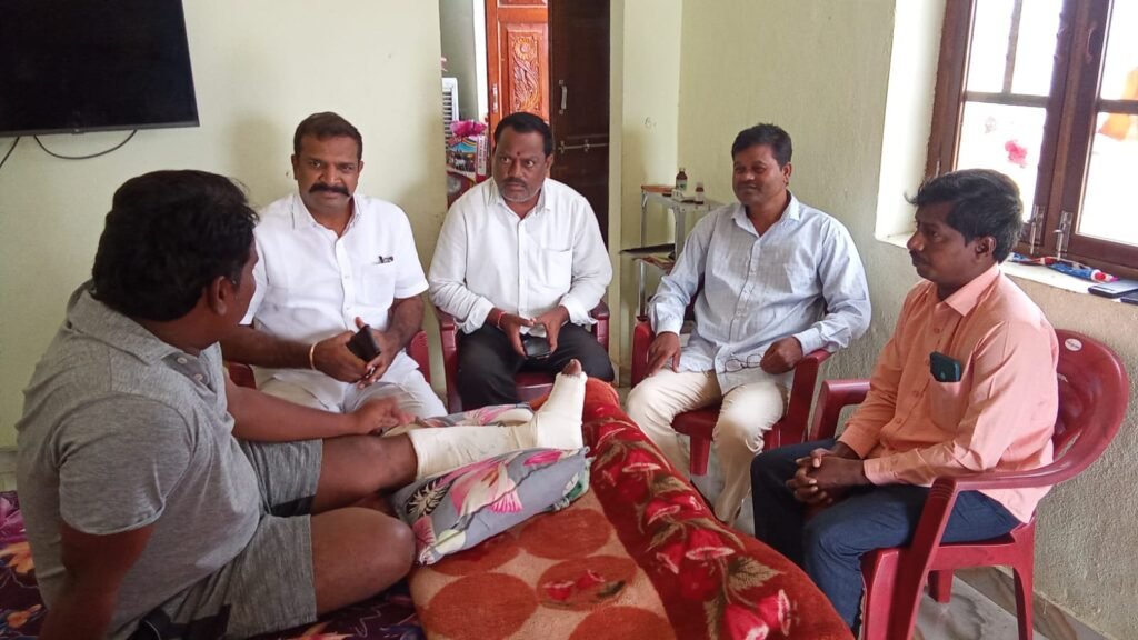 మండల యాదగిరి, స్వర్ణోదయం ప్రతినిధి హుజురాబాద్: సైదాపూర్ మండల నమస్తే తెలంగాణ రిపోర్టర్ అనగోని తిరుపతి గౌడ్ మూడు రోజుల క్రితం ప్రమాదానికి గురై కాలు విరగగా ఆయనను బీజేపీ రాష్ట్ర కార్యవర్గ సభ్యులు జన్నపురెడ్డి సురేందర్ రెడ్డి (JSR) గురువారం పరామర్శించి ప్రమాద వివరాలను అడిగి తెలుసుకున్నారు. ఆయన తొందరగా కోలుకోవాలని ఆకాంక్షించారు. ఆయన వెంట బిజెపి నాయకులు శ్రీనివాస్ రెడ్డి తదితరులు ఉన్నారు.