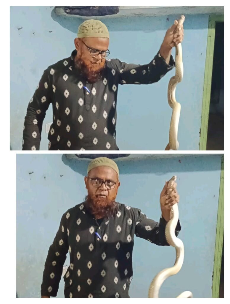మండల యాదగిరి, స్వర్ణోదయం ప్రతినిధి హుజూరాబాద్: నవంబర్ 09: పట్టణంలోని వరంగల్ ప్రధాన రహదారిలో ఎస్బీఐ ఏటీఎం పక్కన నివాసముండే అశోక్ ఇంట్లో శనివారం నాగుపాము కలకలం సృష్టించింది. కుటుంబ సభ్యులు, స్థానికుల వివరాల ప్రకారం. నాగుపాము కనిపించే సరికి ఒక్కసారిగా భయభ్రాంతులకు గురై, స్థానికంగా నివాసముండే స్నేక్ క్యాచర్ అఫ్టల్కు సమాచారం అందించారు. వెంటనే అక్కడికి చేరుకొని గంటపాటు శ్రమించి, చాకచక్యంగా నాగుపామును బంధించి, పట్టణ శివారు అటవీ ప్రాంతంలో వదిలివేయడంతో కుటుంబ సభ్యులు ఊపిరి పీల్చుకున్నారు. ఇంటికి అనుకునే ఏటీఎం ఉండడం, అదృష్టవశాత్తు ఏటీఎంలో పాము లేకపోవడంతో ప్రమాదం తప్పింది.