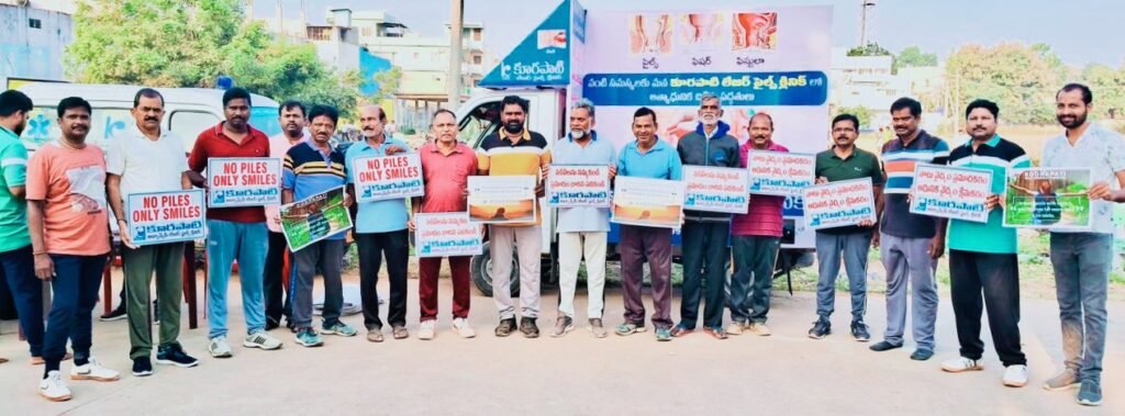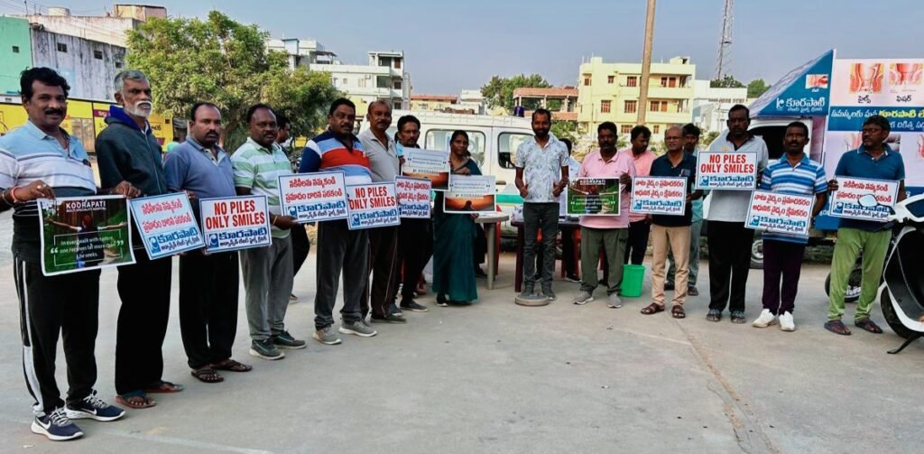 మండల యాదగిరి, స్వర్ణోదయం ప్రతినిధి హుజురాబాద్: హుజురాబాద్ ప్రభుత్వ ఉన్నత పాఠశాల ప్రాంగణంలో కూరపాటి హాస్పిటల్ వారు శనివారం వరల్డ్ పైల్స్ డే నీ పురస్కరించుకుని ఆరోగ్య అవగాహన సదస్సు నిర్వహించారు. ప్రస్తుత జీవన శైలిలో అనేక మార్పులు తీసుకునే ఆహారంలో మార్పుల వలన మలబద్దకo మరియు దాని వలన పైల్స్ సంబంధిత ఇబ్బందులు ఎక్కువ అయ్యాయన్నారు. మధుమేహానికి సంబంధించిన అవగాహన కార్యక్రమంలో భాగంగా ఉచిత మెడికల్ క్యాంపు నిర్వహించడం జరిగింది. ఈ క్యాంపులో దాదాపుగా 100 నుండి 150 మందికి బి.పి మరియు షుగర్ సంబంధిత పరీక్షలు చేయడం జరిగింది. వారికి సలహాలు సూచనలు ఇవ్వడం జరిగింది. ఈ కార్యక్రమంలో భాగంగా పైల్స్ గురించి ప్రజలలో అవగాహన పెంచటానికి డా. కూరపాటి రమేష్, డా. కూరపాటి రాధిక, డాక్టర్ K. సుధాకర్, మరియు కౌన్సిలర్ తాళ్లపల్లి శ్రీనివాస్ మరియు walkers సభ్యులచే గోడపత్రికను ఆవిష్కరించడం జరిగింది. ఈ కార్యక్రమంలో హాస్పిటల్ సిబ్బంది మరియు తదితరులు పాల్గొన్నారు.