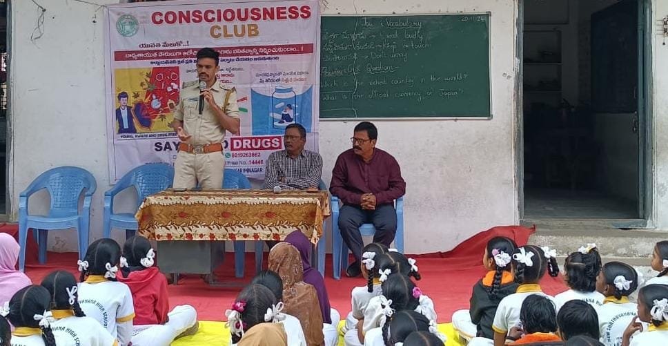 విద్యార్థులు భవిష్యత్తుపైనే దృష్టి పెట్టాలని, మత్తుకు నో చెప్పాలని హుజురాబాద్ ఎక్సైజ్ ఎస్సై వినోద్ కుమార్ అన్నారు. బుధవారం హుజురాబాద్ పట్టణంలోని న్యూ శాతవాహన హైస్కూల్లో ప్రపంచ బాలల దినోత్సవాన్ని పురస్కరించుకొని మత్తు పదార్థాలు-అనర్థాలు అనే అంశంపై విద్యార్థులకు అవగాహన సదస్సు జరిగింది. ఈ సందర్భంగా ఎస్సై మాట్లాడుతూ…ప్రతి విద్యార్థి మత్తు పదార్థాల పట్ల అవగాహన కలిగి ఉండాలని వాటిని సేవించడం వల్ల భవిష్యత్తు అంధకారమవుతుందని అన్నారు. స్నేహితుల వల్ల ఇతరుల వల్ల మత్తు పదార్థాలను అలవాటు చేసుకోవద్దని అన్నారు. మొదట మొహమాటంతో మొదలై తర్వాత మత్తు పదార్థాలకు బానిస అవుతారని అన్నారు. విద్యార్థులు పాఠశాల నుండి ఇంటికి వెళ్లిన తర్వాత సోషల్ మీడియాపై దృష్టి పెట్టకూడదని దానివల్ల భవిష్యత్తు అంధకారం అవుతుందని అన్నారు. తల్లిదండ్రుల ఆలోచనలను గౌరవించి చెడు అలవాట్లకు దూరంగా ఉండి ఉన్నత స్థాయికి ఎదగాలని అన్నారు. మీ పరిసర ప్రాంతాల్లో మత్తు పదార్థాలు గంజాయి హేరాయిన్,కొకైన్ తదితర వాటిని వాడుతున్నట్లు మీ దృష్టికి వచ్చిన 1098 ఫోన్ చేయాలని అన్నారు. ఈ సందర్భంగా పిల్లలచే మత్తు పదార్థాలకు దూరంగా ఉంటామని ప్రతిజ్ఞ చేయించారు. ఈ కార్యక్రమంలో కరస్పాండెంట్ వకుళాభరణం వెంకటేశ్వర్లు, పరాంకుశం కిరణ్ కుమార్, పోలీస్ సిబ్బంది ఉపాధ్యాయులు పాల్గొన్నారు