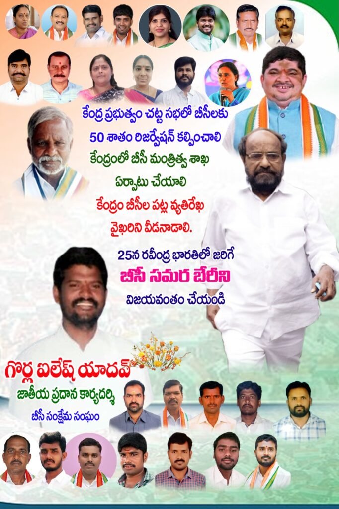 మండల యాదగిరి, స్వర్ణోదయం ప్రతినిధి హుజూరాబాద్ : ఈనెల 25న హైదరాబాద్ రవీంద్రభారతిలో జరిగే బీసీల సమరభేరిని జయప్రదం చేయాలని బీసీ సంక్షేమ సంఘం జాతీయ ప్రధాన కార్యదర్శి ఐలేష్ యాదవ్ అన్నారు. శుక్రవారం ఆయన మాట్లాడుతూ.. బీసీలకు చట్ట సభలలో 50శాతం రిజర్వేషన్ కల్పించాలని అన్నారు. కేంద్రంలో బీసీ మంత్రిత్వ శాఖ ఏరా బీసీలపై వ్యతిరేక వైఖరిని కేంద్రప్రభుత్వం వీడాలని కోరారు. ఈ కార్యక్రమానికి ఆర్ కృష్ణయ్య, రాజారామ్ యాదవ్ లు ముఖ్య అతిథులుగా హాజరవుతారని ఆయన తెలిపారు. ఈ సమావేశంలో హరికృష్ణ, శ్రీనివాస్ యాదవ్, ధర్మేందర్ యాదవ్, సమ్మయ్య యాదవ్, బీసీ మహిళా నాయకులు లక్ష్మీ, లత, తదితరులు పాల్గొన్నారు.