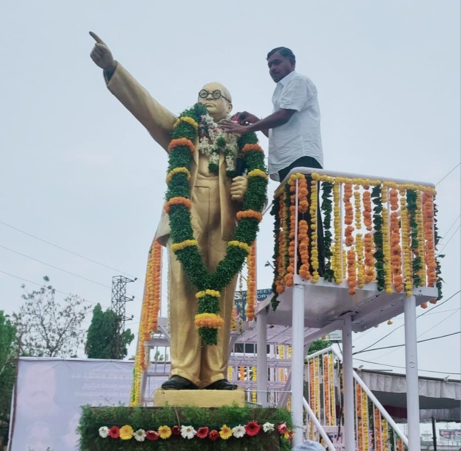 మండల యాదగిరి, స్వర్ణోదయం ప్రతినిధి హుజురాబాద్: భారత రాజ్యాంగ దినోత్సవం సందర్భంగా మంగళవారం కరీంనగర్ జిల్లా కేంద్రంలోని కోర్టు చౌరస్తాలోని అంబేద్కర్ విగ్రహానికి
