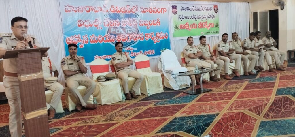 మండల యాదగిరి, స్వర్ణోదయం ప్రతినిధి హుజురాబాద్: హుజురాబాద్ సబ్ డివిజన్ పోలీస్ ఆఫీసర్ ఏసిపి హుజురాబాద్ శ్రీనివాస్ జి ఆధ్వర్యంలో పట్టణంలోని సిటీ సెంటర్ ఫంక్షన్ హాల్ లో పోలీస్ డిపార్ట్మెంట్ లోకి నూతనంగా విధుల్లో చేరిన పోలీస్ కానిస్టేబుల్ ఆఫీసర్లందరీకి ఆహ్వానం మరియు అవగాహన కార్యక్రమము మరియు గత కొద్ది రోజులుగా హుజురాబాద్ సబ్ డివిజన్లో పనిచేసి బదిలీపై వెళ్తున్న హెడ్ కానిస్టేబుల్ ఆఫీసర్లన్దరికి ఆత్మీయ వీడ్కోలు కార్యక్రమంను రాత్రి ఘనంగా నిర్వహించారు. ఈ కార్యక్రమంలో ఏసిపి హుజురాబాద్ శ్రీనివాస్ జి వారికి సబ్ డివిజన్ పరిధిలోని విధులను మరియు బాధ్యతలు పై అవగాహన కల్పించారు. అదేవిధంగా బదిలీపై వెళ్తున్న వారందరికీ సన్మానం చేయడం జరిగింది. ఈ కార్యక్రమంలో హుజురాబాద్ సబ్ డివిజన్ పోలీస్ ఆఫీసర్స్ లు అందరూ హాజరై పోలీస్ ల సేవలను ప్రజలకు మరింత మెరుగుగా అందివ్వాలననే ఉద్దేశంతో నూతనంగా విధుల్లో చేరిన ఆఫీసర్ల అందరికీ అవగాహన కార్యక్రమం చేపట్టడం జరిగిందన్నారు. ఈ కార్యక్రమంలో హుజరాబాద్ టౌన్, రూరల్ సిఐలు తిరుమల్ గౌడ్, పులి వెంకట్ గౌడ్, జమ్మికుంట టౌన్, రూరల్ సీఐలు వి రవి, కిషోర్, ఎస్సైలు తోట తిరుపతి, ఎన్ రాజకుమార్, ఇతర పోలీసు సిబ్బంది పాల్గొన్నారు.