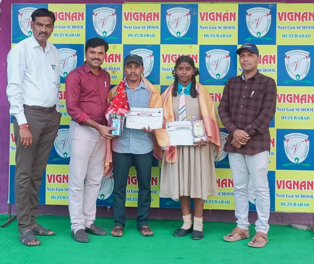 మండల యాదగిరి, స్వర్ణోదయం ప్రతినిధి హుజురాబాద్: హుజూరాబాద్ పట్టణంలోని స్థానిక విజ్ఞాన్ నెక్స్ట్ జెన్ పాఠశాల విద్యార్థిని బొడ్డు మహాలక్ష్మి, సోమవారం రోజున కరీంనగర్ లో జరిగిన 52వ రాష్ట్రీయ బాల్ వైజ్ఞానిక ప్రదర్శన 2024 -25 లో భాగంగా ఉత్తమ ప్రదర్శన కనబరిచి జిల్లా స్థాయి, జూనియర్ విభాగంలో మొదటి బహుమతి సాధించి రాష్ట్రస్థాయికి ఎంపికైనట్లు పాఠశాల కరస్పాండెంట్ దాసరి కోటేశ్వర్ మంగళవారం రోజున తెలిపారు. ఈ సందర్భంగా విద్యార్థి బొడ్డు మహాలక్ష్మి మాట్లాడుతూ సేంద్రీయ వ్యవసాయం తీమ్ లో భాగంగా తాను ప్రకృతి కీటక నాశకాలు మరియు విద్యుత్ బల్బ్ తో పంటలలో కీటకాలను ఎలా నివారించాలి అనే ప్రాజెక్టును సమర్థవంతంగా పూర్తి చేశానని, దీనికి పాఠశాల గైడ్ టీచర్ గోశికొండ మృత్యుంజయ సహకరించారని, జిల్లాస్థాయిలో జూనియర్ విభాగంలో ప్రథమ బహుమతి తో పాటు ప్రశంస పత్రం సాధించినందుకు చాలా సంతోషంగా ఉందని తెలిపారు. తదనంతరం పాఠశాల కరస్పాండెంట్ దాసరి కోటేశ్వర్ మాట్లాడుతూ తమ విద్యార్థిని 500 కంటే ఎక్కువ మంది విద్యార్థులు పాల్గొనగా తమ విజ్ఞాన్ పాఠశాల విద్యార్థిని ప్రథమ స్థానం తో రాష్ట్ర స్థాయికి ఎంపిక కావడం పట్ల చాలా సంతోషంగా ఉందని, జిల్లా విద్యాధికారి జనార్దన్ రావు, జిల్లా సైన్స్ అధికారి జైపాల్ రెడ్డి, డిప్యూటీ కలెక్టర్ చేతుల మీదుగా అవార్డు తీసుకోవడం తమకి ఎంతో గర్వకారణమని, మండల విద్యాధికారి భూపతి శ్రీనివాస్ కూడా తమ విద్యార్థినిని అభినందించారని తెలిపారు. అలాగే మా పాఠశాలలో విద్యార్థులను బట్టి పద్ధతిలో కాకుండా లర్నింగ్ బై డూయింగ్ పద్ధతిలో నేర్పిస్తామని మాట్లాడారు. ఈ సందర్భాన్ని పురస్కరించుకొని మంగళవారం రోజున విద్యార్థిని మహాలక్ష్మి అలాగే గైడ్ టీచర్ మృత్యుంజయను శాలువా, షీల్డ్ లతో సత్కరించారు. ఈ కార్యక్రమంలో పాఠశాల కరస్పాండెంట్ దాసరి కోటేశ్వర్, డైరెక్టర్ తిరుపతి యాదవ్, ప్రిన్సిపాల్ కొండబత్తిని శ్రీనివాస్, ఉపాధ్యాయులు, విద్యార్థులు పాల్గొన్నారు.