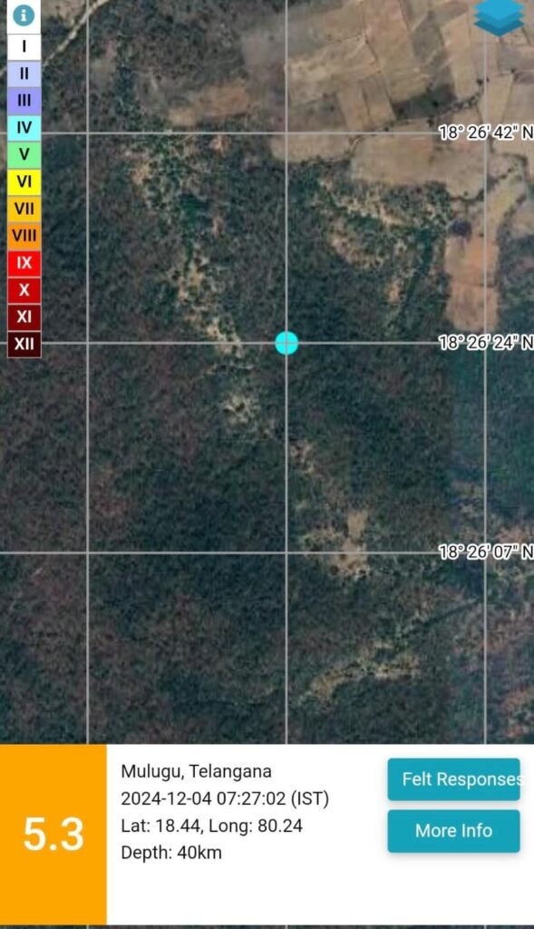ఈరోజు ఉదయం 7:27 గంటలకు తెలంగాణ లో రిక్టర్ స్కేల్పై 5.3 తీవ్రతతో భూకంపం సంభవించింది: నేషనల్ సెంటర్ ఫర్ సిస్మోలజీ