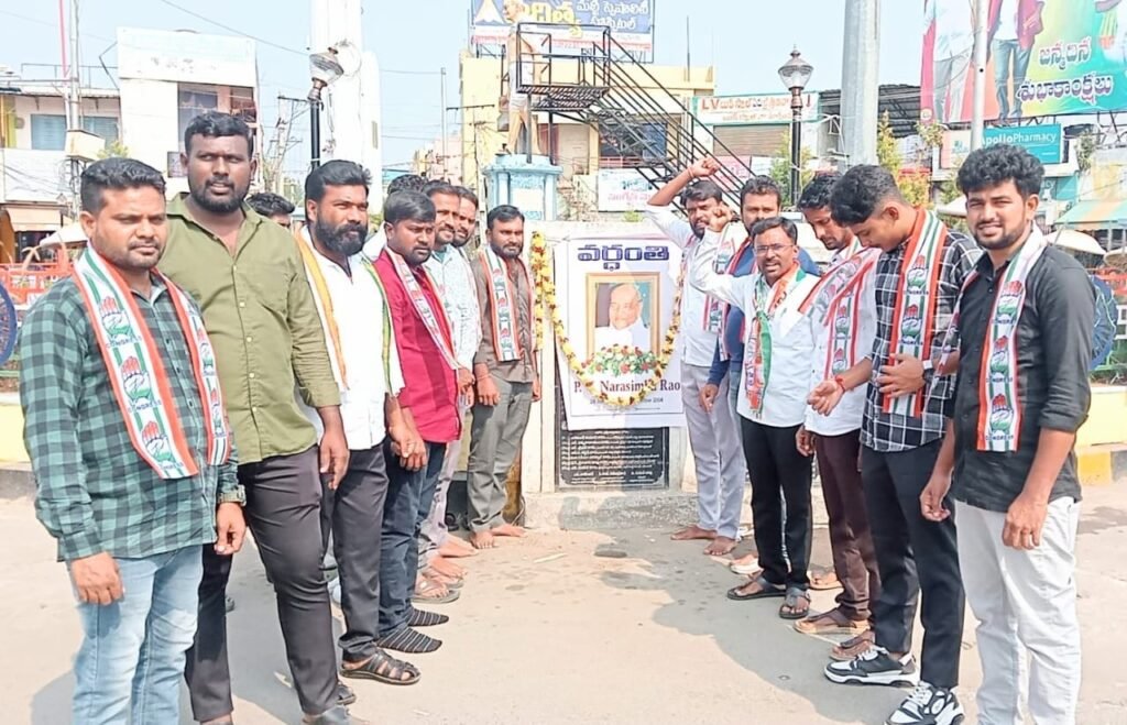 కుమార్ యాదవ్, స్వర్ణోదయం రిపోర్టర్ జమ్మికుంట: జమ్మికుంట పట్టణంలోని గాంధీ చౌరస్తా లో యూత్ కాంగ్రెస్ ఆధ్వర్యంలో కాంగ్రెస్ పార్టీ హుజురాబాద్ నియోజకవర్గం ఇంచార్జ్ వోడితల ప్రణవ్ ఆదేశాల మేరకు దివంగత ప్రధాని పివి నరసింహారావు వర్ధంతి కార్యక్రమాన్ని ఘనంగా నిర్వహించారు. యూత్ కాంగ్రెస్ జమ్మికుంట మండల అధ్యక్షులు బుడిగె శ్రీకాంత్ ఆధ్వర్యంలో దివంగత ప్రధాని పి.వి నరసింహారావు వర్ధంతి నిర్వహించగా, ఈ కార్యక్రమంలో భాగంగా యూత్ కాంగ్రెస్ నాయకులు పాల్గొని పి.వి చిత్రపటానికి పూలమాల వేసి ఘన నివాళులు ఆర్పించారు. ఈ సందర్భంగా నాయకులు మాట్లాడుతూ..దేశానికి అందించిన సేవలను గుర్తు చేసుకున్నారు. పివి నరసింహారావు దక్షిణ భారతదేశం నుంచి తెలుగువారిగా ఈ దేశానికి సేవలు అందించిన మొట్టమొదటి ప్రధానిగా విశేష సేవలు అందించిన ఘనత పివి ది అని నాయకులు అన్నారు. ముఖ్యమంత్రిగా ఎన్ని ఇబ్బందులు ఎదురైన ముఖ్యమంత్రి పదవి త్యాగం చేయాల్సి వస్తుందని తెలిసి కూడా అనేక సంస్కరణలు తీసుకొచ్చి, ముఖ్యంగా భూ సంస్కరణలతో లక్షలాది మంది పేదలకు భూములు అందేలా కృషి చేసిన గొప్ప చరిత్ర పీవీది అన్నారు. భారతదేశం తీవ్రమైనటువంటి ఆర్థిక సంక్షోభానికి గురైన సందర్భంలో, ప్రధానిగా బాధ్యతలు చేపట్టి దేశ చరిత్రలో గొప్పగా ఆర్థిక సంస్కరణలను అమలు చేసి, దేశ ఆర్థిక పరిస్థితుల్ని గాడిలో పెట్టిన గొప్ప చరిత్ర అని నాయకులు గుర్తు చేశారు. పివి సేవల్ని వారి ఆలోచన విధానాలను యూత్ కాంగ్రెస్ ఆధ్వర్యంలో ముందుకు తీసుకెళ్తామని, ముందు తరాలకు తెలియజేస్తామని యూత్ కాంగ్రెస్ నాయకులు తెలిపారు.