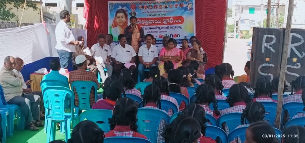 మండల యాదగిరి, స్వర్ణోదయం ప్రతినిధి హుజూరాబాద్, జనవరి 3: ప్రభుత్వం సావిత్రిభాయి పూలే జయంతిని రాష్ట్ర మహిళా ఉపాధ్యాయ దినోత్సవంగా ప్రకటించడంతో పట్టణంలోని ప్రభుత్వ జూనియర్, డిగ్రీ కళాశాల, సింగాపూర్ గ్రామంలోని వీఎస్ ఆర్ డిగ్రీ కళాశాలతో పాటు పూలే జయంతోత్సవ కమిటీ చైర్మన్ ఉప్పు శ్రీనివాస్ ఆధ్వర్యంలో జయంతి వేడుకలు ఘనంగా నిర్వహించారు. సావిత్రిభాయి పూలే చిత్రపటానికి పూలమాలలతో నివాళులర్పించారు. ఈ సందర్భంగా పట్టణంలోని జమ్మికుంట రోడ్డులో నిర్వహించిన వేడుకలకు మున్సిపల్ చైర్పర్సన్ గందె రాధిక ముఖ్య అతిథిగా హాజరయ్యారు. ఈ సందర్భంగా ఆమె మాట్లాడుతూ.. సావిత్రిభాయి పూలే జీవితం నవతరానికి ఆదర్శమన్నారు. సావిత్రిభాయి పూలే భారతదేశ మొదటి మహిళా ఉపాధ్యాయురాలుగా, మహిళల అక్షరాశ్యత కోసం విశేష సేవలందించిందని కొనియాడారు. పూలే దంపతులు లేకుంటే ఆధునిక భారతానికి చదువు అందని ద్రాక్షగానే మిగిలేదన్నారు. ఈ కార్యక్రమాల్లో పట్టణ సీఐ తిరుమల్ గౌడ్, ఎస్సీ కార్పొరేషన్ మాజీ చైర్మన్ బండ శ్రీనివాస్, మార్కెట్ కమిటీ డైరెక్టర్ సదానందం, టాప్రా జిల్లా అధ్యక్షుడు జనార్ధన్, మున్సిపల్ మాజీ చైర్మన్ విజయ్ కుమార్, ఖాలీద్ హుస్సేన్, రాష్ట్ర ఎస్సీ ఎస్టీ అట్రాసిటీ సెల్ కన్వీనర్ తిప్పారపు సంపత్, హనుమాన్ టెంపుల్ చైర్మన్ శంకర్, వేల్పుల రత్నం, ప్రధానోపాధ్యాయురాల్లు, ప్రభుత్వ డిగ్రీ, ఇంటర్, వీఎస్ఆర్ డిగ్రీ కళాశాలల ప్రిన్సిపాళ్లు, ఉపాధ్యాయులు, ఉపాధ్యాయురాలు, విద్యార్ధినీ విద్యార్థులు పాల్గొన్నారు.
