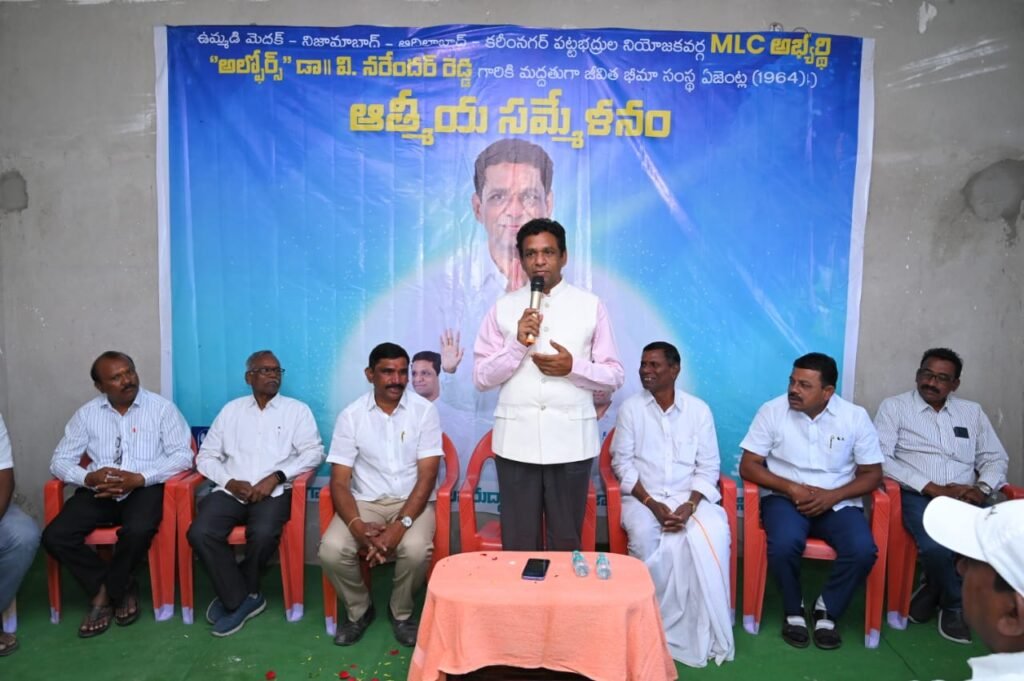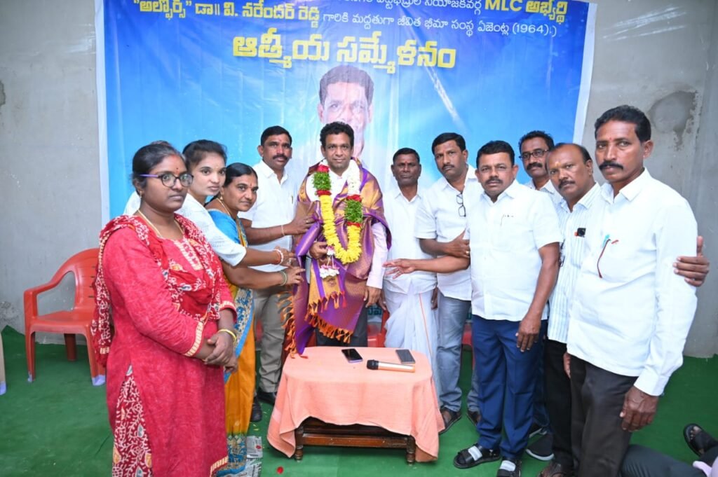 మండల యాదగిరి, స్వర్ణోదయం ప్రతినిధి కరీంనగర్ (నిర్మల్) : ఉద్యోగ, నిరుద్యోగ సమస్యలపై పూర్తి స్థాయిలో అవగాహన ఉన్న తనకు జీవిత భీమా సంస్థ ఎజెంట్లు సంపూర్ణ మద్దతు తెలపడం పట్ల కరీంనగర్ ఆదిలాబాద్, నిజామాబాదు, మెదక్ పట్టభద్రుల ఎమ్మెల్సీ అభ్యర్థి అల్ఫోర్స్ విద్య సంస్థల చైర్మన్ డా వి.నరేందర్ రెడ్డి ఆనందం వ్యక్తం చేశారు. సోమవారం నిర్మల్ జిల్లా కేంద్రంలో LIC ఏజెంట్ల ఆత్మీయ సమ్మేళనం జరిగింది. కార్యక్రమానికి విచ్చేసిన నరేందర్ రెడ్డికి LIC ఉద్యోగులు బ్యాండ్ మేళంతో ఘన స్వాగతం పలికారు.ఈ సందర్బంగా ఆయనసంవత్సరాలనుండి మాట్లాడుతూ ఉద్యోగులకు అండగా ఉంటూ నిరుద్యోగ సమస్య ను నిర్మలించేందుకే తాను రాజకీయాల్లోకి వస్తున్నట్లు వెల్లడించారు. పట్టభద్రుల సమస్యల పట్ల పూర్తి స్థాయిలో అవగాహన ఉన్న తనను భారీ మెజారిటీ తో గెలిపించాలని విజ్ఞప్తి చేశారు. రాష్ట్ర వ్యాప్తంగా ఉన్న లైబ్రరీలను బలోపేతం చేసేందుకు తాను కృషి చేస్తున్నట్టు వెల్లడించారు. ఉమ్మడి నాలుగు జిల్లాల చాలా చోట్ల గ్రంధాలయాల్లో మౌళిక సదుపాయాలు కల్పించినట్లు వెల్లడించారు..