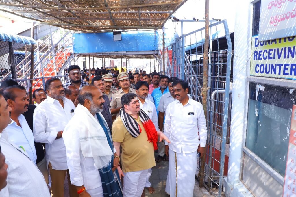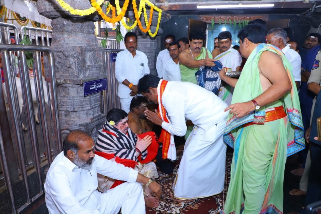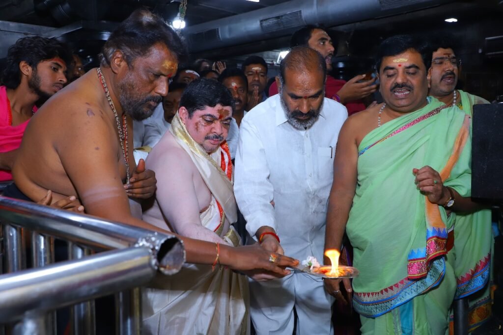 మండల యాదగిరి, స్వర్ణోదయం ప్రతినిధి కరీంనగర్:రవాణా బీసీ సంక్షేమ శాఖ మంత్రి పొన్నం ప్రభాకర్ ప్రభుత్వ విప్ లు ఆది శ్రీనివాస్, అడ్లూరి లక్ష్మణ్ కుమార్ లతో కలిసి రాజన్నను దర్శించుకున్నారు. ఆరుద్ర నక్షత్రం సోమవారమ పౌర్ణమి మహా పర్వదినాన వేములవాడ శ్రీ రాజరాజేశ్వర స్వామి వారిని దర్శించుకోవడం జరిగింది. ఈ సీజన్ లో కూడా మంచి పుష్కలమైన వర్షాలు పడి, ఆయు ఆరోగ్యాలతో పాడి పంటలతో, ప్రజలంతా సుఖ సంతోషాలతో తెలంగాణ సమాజం బాగుండాలని రాజన్న స్వామిని మొక్కుకున్నట్లు ఆయన చెప్పారు. రైతంగము బాగుంటేనే అందరూ బాగుంటారని, దక్షిణ కాశీ వేములవాడ అభివృద్ధికి ముఖ్యమంత్రి రేవంత్ రెడ్డి ఇప్పటికే పలు కార్యక్రమాలను ప్రారంభించారన్నారు. ఆధి శ్రీనివాస్ తో పాటు నాది ,ఈ ప్రాంత ప్రజల చిరకాల స్వప్నం నిత్య అన్నదాన సత్రం ఏర్పాటు చేయడం అన్నారు. నిత్యాన్నదాన సత్రంకు మంత్రి పొన్నం ఫ్యామిలీ తరపున రూ.40 లక్షల విరాళం అందించారు. ముఖ్యమంత్రికి మా విజ్ఞప్తి మేరకు అన్నదాన సత్రం భవన నిర్మాణానికి రూ.35 కోట్లు మంజూరు చేస్తూ జీవో కూడా విడుదల చేశారన్నారు. 35 కోట్లతో అన్నదాన సత్రం భవన నిర్మాణానికి టెండర్ ప్రక్రియ జరుగుతుందన్నారు. అన్నదాన సత్రం నిరంతరం జరగడానికి ట్రస్ట్ లో ఇప్పటికే 20 కోట్లు ఉన్నాయని మంత్రి పొన్నం ప్రభాకర్ తెలిపారు.