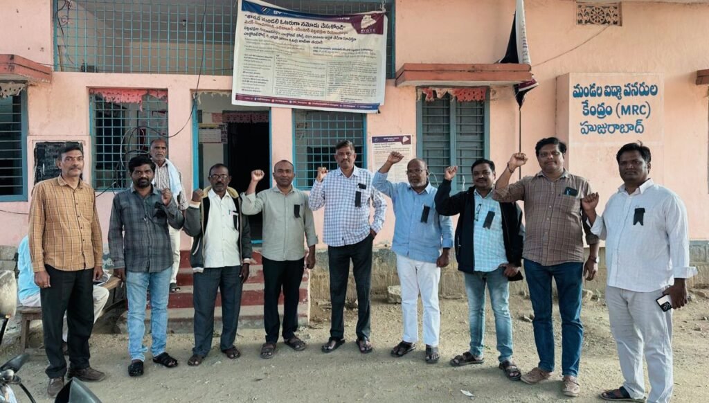 మండల యాదగిరి, స్వర్ణోదయం ప్రతినిధి హుజురాబాద్: రంగారెడ్డి జిల్లా మహేశ్వరం మండలం తుక్కగూడ ఉన్నత పాఠశాలలో హెడ్మాస్టర్ గా పనిచేస్తున్న కంబాల రాములుపై దాడికి పాల్పడిన వారిని కఠినంగా శిక్షించాలని కోరుతూ సోమవారం హుజురాబాద్ మండలంలోని అన్ని పాఠశాలల్లో ఉపాధ్యాయులు నల్ల బ్యాడ్జీలు ధరించి నిరసన తెలిపారు. ఈ సందర్భంగా మండల వనరుల కేంద్రం హుజురాబాద్ వద్ద DTF రాష్ట్ర ఆడిట్ కమిటీ కన్వీనర్ పలకల ఈశ్వర్ రెడ్డి మాట్లాడుతూ రాములు పై కొంతమంది వ్యక్తులు దాడి చేసిన సంఘటనలను తీవ్రంగా ఖండిస్తున్నామన్నారు. ఆ వ్యక్తులపై చట్ట ప్రకారం కఠినంగా శిక్షించాలని భవిష్యత్తులో ఇలాంటి సంఘటనలు జరగకుండా ప్రభుత్వం చర్యలు తీసుకోవాలని డిమాండ్ చేశారు. ఈ నిరసనలో DTF హుజురాబాద్ మండల బాధ్యులు ఎస్ చక్రధర్, అల్లి శ్రీనివాస్, కనకం వెంకటస్వామి, డి సదానందం, ఆర్ భాస్కర్, ఏం రాజేష్, శ్రీనివాస్ రెడ్డి, PRTU రాష్ట్ర నాయకులు మ్యాక రాములు తదితరులు పాల్గొన్నారు.