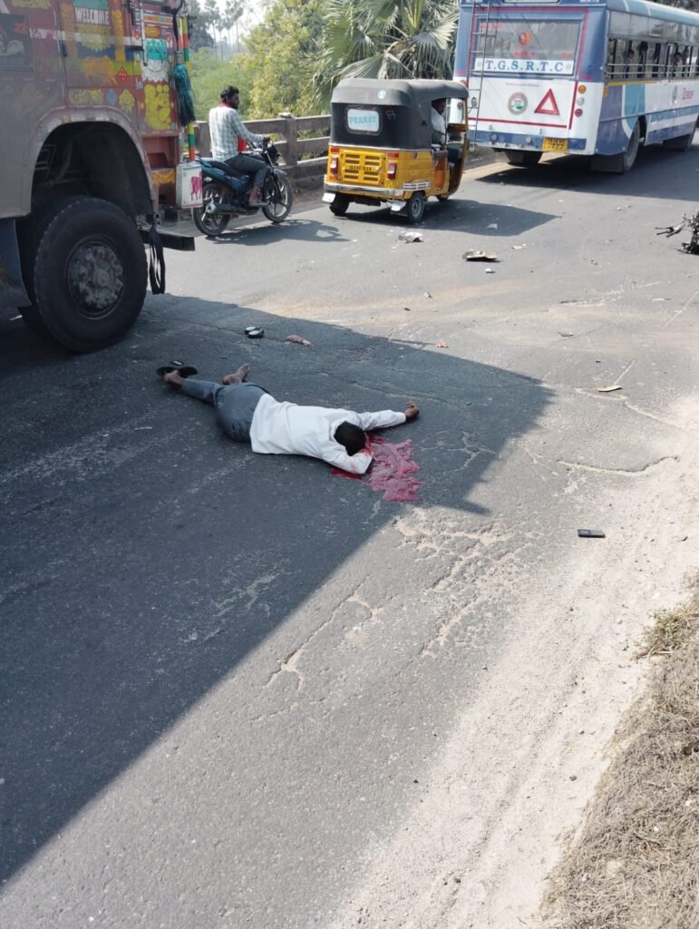 మండల యాదగిరి, స్వర్ణోదయం ప్రతినిధి హుజురాబాద్ (ఎల్కతుర్తి) జనవరి 27: హనుమకొండ జిల్లా ఎల్కతుర్తి మండలం కోతులనడుమ గ్రామ బ్రిడ్జిమీద(నేషనల్ హైవే 563) హనుమకొండ వైపు నుండి లోడుతో వస్తున్నటువంటి TS 24TA3645 లారీ హుజురాబాద్ వైపు నుండి వస్తున్నటువంటి ద్విచక్ర వాహనం నెంబర్ AP 28DM5764(ఉమ్మడి ఆంధ్రప్రదేశ్ రిజిస్ట్రేషన్ నెంబర్) ను ఢీకొట్టడంతో ద్విచక్ర వాహనదారుడు తీవ్ర గాయాలతో అక్కడికక్కడే మృతి చెందాడు. పోలీసులు తెలిపిన వివరాల ప్రకారం.. ఎల్కతుర్తి మండలంలోని సురారం గ్రామానికి చెందిన బచ్చు రాజేశ్వరరావు(54 సంవత్సరాలు) వీరనారాయణపూర్ లో నూతనంగా నిర్మించుకున్న ఇంటికి వెళ్లి హుజురాబాద్ వైపు వస్తుండగా లారీ ఢీకొట్టడంతో ద్విచక్ర వాహనం పైన కింద పడి తల పగిలి తీవ్రత గారితో అక్కడికక్కడే మృతి చెందాడు. సంఘటన స్థలాన్ని పరిశీలించి ఈ ఘటనపై కేసు నమోదు చేసి దర్యాప్తు చేస్తున్నట్లు ఎస్ఐ ఏ ప్రవీణ్ కుమార్ తెలిపారు..