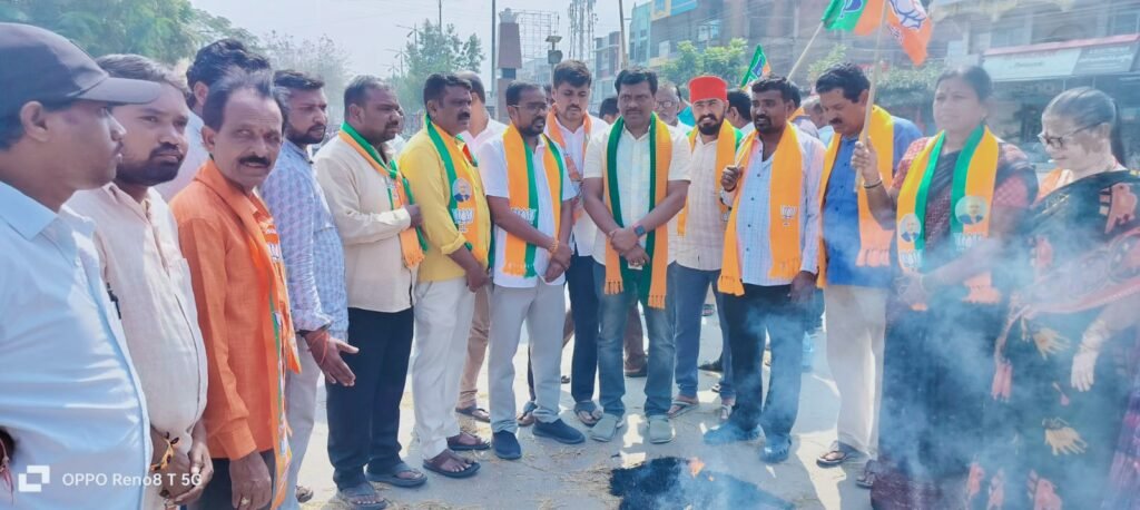 మండల యాదగిరి, స్వర్ణోదయం ప్రతినిధి హుజురాబాద్: భారతీయ జనతా పార్టీ హుజురాబాద్ పట్టణ, మండల శాఖ ఆధ్వర్యంలో అంబేద్కర్ చౌరస్తాలో రేవంత్ రెడ్డి దిష్టి బొమ్మ దగ్ధం చేయడం జరిగింది. ఈ సందర్భంగా బిజెపి హుజూరాబాద్ పట్టణ అధ్యక్షుడు తూర్పాటి రాజు మాట్లాడుతూ ఎంతోమంది పోలీసులను, జాతీయవాదులను చంపిన నరహంతక నక్సలైట్లకు మద్దతుగా పాటలు పాడిన గద్దర్ కి పద్మశ్రీ అవార్డు ఎందుకు ఇవ్వాలని ప్రశ్నించడం జరిగింది. ప్రజాస్వామ్యంపై నమ్మకం లేని వ్యవస్థలో పనిచేసి ఎంతోమంది యువకులను అడవుల బాట పట్టించిన గద్దర్ ఎందరో తల్లుల కడుపు కోతకు కారణమయ్యాడు. దేశానికి వ్యతిరేకంగా నిరంతరం పనిచేసిన గద్దర్ కి అవార్డుల ఎలా ఇస్తారని ప్రశ్నించిన బండి సంజయ్ గారి మాటల్లో ఎలాంటి తప్పు లేదని, బండి సంజయ్ దిష్టిబొమ్మను తగలబెట్టిన కాంగ్రెస్ నాయకులకు సిగ్గు శరం లేవని, ఎప్పుడూ దేశ వ్యతిరేక కార్యక్రమాలకు పాల్పడే శక్తులకు వంతపాడడం కాంగ్రెస్ పార్టీకి అలవాటేనని విమర్శించారు. మందకృష్ణ మాదిగకి పద్మశ్రీ అవార్డు వచ్చినందుకు కాంగ్రెస్ పార్టీకి మింగుడు పడటం లేదని అన్నారు. బడుగు బలహీన వర్గాల నిమ్నవర్గాలకు కాంగ్రెస్ పార్టీ ఎప్పుడు వ్యతిరేకంగా ఉంటుంధన్నారు.