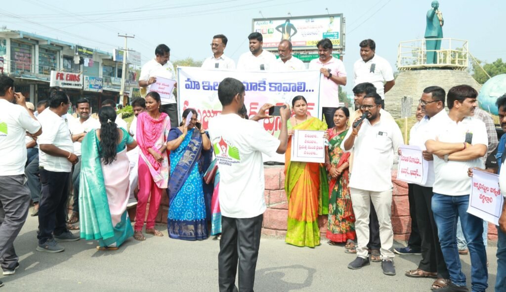 మండల యాదగిరి,స్వర్ణోదయం ప్రతినిధి హుజురాబాద్, జనవరి 30: మా ఇల్లు మాకు కావాలంటూ హుజురాబాద్ జర్నలిస్టులు చేపట్టిన నిరసన కార్యక్రమాలు ఉదృతమయ్యాయి. ఈ నిరసన కార్యక్రమంలో భాగంగా గురువారం నాలుగో రోజు కు చేరుకుంది. హుజురాబాద్ జర్నలిస్టులతో పాటు వివిధ పార్టీలు, ప్రజా సంఘాలు, కుల సంఘాలతో ప్రెస్ క్లబ్ నుంచి ర్యాలీగా బయలుదేరి అంబేద్కర్ చౌరస్తాలో బైఠాయించారు. అనంతరం రాస్తారోకో నిర్వహించి ప్రభుత్వానికి వ్యతిరేకంగా పెద్ద ఎత్తున నినాదాలు చేశారు. ఈ సందర్భంగా పలువురు పార్టీ నాయకులు మాట్లాడుతూ…జర్నలిస్టుల సమస్యలను ప్రభుత్వం పెడచెవిన పెట్టడం సిగ్గుచేటు అన్నారు. గత ప్రభుత్వంలో కేటాయించిన ఇళ్ల స్థలాలలో జర్నలిస్టులు లక్షలు వెచ్చించి గృహ నిర్మాణాలు చేసుకున్నారని, వెంటనే వాటిని పూర్తిస్థాయిలో వారికి కేటాయించేలా ప్రభుత్వం చర్యలు తీసుకోవాలని వారు డిమాండ్ చేశారు. ప్రజలకు,ప్రభుత్వానికి వారధిగా ఉండే జర్నలిస్టుల సమస్యలే పరిష్కరించకుంటే ప్రజా ప్రభుత్వమని చెప్పుకుంటున్న కాంగ్రెస్ ప్రభుత్వం సామాన్య ప్రజల కష్టాలు ఎలా తీరుస్తుందని వారి ప్రశ్నించారు. వెంటనే నియోజకవర్గ ఇన్చార్జి వొడితల ప్రణవ్ బాబు తో పాటు మంత్రి పొన్న ప్రభాకర్ చొరవ తీసుకొని వారికి పూర్తిస్థాయిలో ఇళ్ళ నిర్మాణం చేసి ఇవ్వాలన్నారు. జర్నలిస్టుల ఇళ్ల సమస్య పరిష్కారం అయ్యేంతవరకు వారు చేపట్టే ప్రతి నిరసన కార్యక్రమంలో తమ పూర్తిస్థాయి మద్దతు ఉంటుందని అన్నారు. జర్నలిస్టు సమస్యలు పరిష్కరించకపోతే రానున్న రోజుల్లో తీవ్రస్థాయిలో ఉద్యమాలు చేపడతామని హెచ్చరించారు. అనంతరం జమ్మికుంట రోడ్డులో గల మహాత్మా గాంధీ విగ్రహానికి వినతి పత్రం అందించారు. ఈ కార్యక్రమంలో ప్రెస్ క్లబ్ కన్వీనర్ గడ్డం ధర్మారెడ్డి, కో కన్వీనర్ లు కాయిత రాములు,ఎలక్ట్రానిక్ మీడియా డివిజన్ అధ్యక్షుడు మక్సుద్, మాజీ ఎస్సీ కార్పొరేషన్ చైర్మన్ బండ శ్రీనివాస్, తాజా మాజీ మున్సిపల్ చైర్ పర్సన్ గందే రాధిక, బిఆర్ఎస్ పట్టణ అధ్యక్షుడు కొలిపాక శ్రీనివాస్, నాయకుడు గందే శ్రీనివాస్, బిజెపి పట్టణ అధ్యక్షుడు తూర్పాటి రాజు, ప్రజాసంఘాల నాయకులు వేల్పుల ప్రభాకర్, మార్త రవి, చందుపట్ల జనార్ధన్, మాజీ కౌన్సిలర్లు మారపల్లి సుశీల, కళ్ళపల్లి రామాదేవి, ముత్యంరాజు, తాళ్లపల్లి శ్రీనివాస్, బిజెపి నాయకులు రాజు, లక్ష్మి, రాజు, ప్రెస్ క్లబ్ సభ్యులు పాల్గొన్నారు.