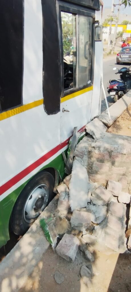 మండల యాదగిరి, స్వర్ణోదయం ప్రతినిధి హుజురాబాద్: హుజురాబాద్ పట్టణంలోని జమ్మికుంట రోడ్డులో ఓ ఆర్టీసీ మినీ బస్సు తృటిలో ప్రమాదం నుంచి బయటపడింది. మినీ బస్సును ఓవర్టేక్ చేయబోయిన లారీ బస్సును వెనక నుండి ఢీ కొట్టడంతో ఆర్టీసీ మినీ బస్సు టీఎస్ 23 0002 నంబరు గల బస్సు రోడ్డు మధ్యలో ఉన్న డివైడర్ను ఢీ కొట్టి ఆగింది. ఆ సమయంలో బస్సులో 40 మంది ప్రయాణికులు ఉండగా వారు ఎలాంటి గాయాలు కాకపోవడంతో అందరూ ఊపిరి పీల్చుకున్నారు. మినీ బస్సు మాత్రం ముందు భాగం నుజు నుజ్జు కావడంతో డ్రైవర్ రవీందర్ పోలీసులను ఆశ్రయించారు. లారీ డ్రైవర్ ఎండి జలీల్ నిర్లక్ష్యం వల్లే ఆర్టీసీ బస్సు వెనకాల తగిలి బస్సు డివైడర్ కు ఢీ కొట్టాల్సిన పరిస్థితి ఏర్పడిందని స్థానికులు తెలిపారు. అంతేకాక లారీ డ్రైవర్ లారీ యూనియన్ నాయకులను పిలిపించి బస్సు డ్రైవర్ ని బెదిరించేందుకు ప్రయత్నించగా పోలీసులు లారీ డ్రైవర్ ను అదుపులోకి తీసుకొని విచారిస్తున్నారు.