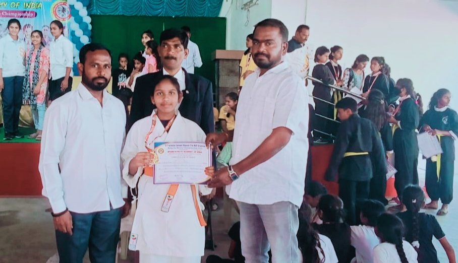 గోల్డ్ మెడల్స్, ఒక సిల్వర్ మెడల్ సాధించడం అభినందనీయమని అన్నారు. రాష్ట్రస్థాయి మార్షల్ కరాటే పోటీలలో పథకాలు సాధిం విద్యార్థినీ విద్యార్థులకు కరాటే నేర్చుకోవడం ద్వారా ఆత్మ కైర్యంతోపాటు స్నేహభావాన్ని పెంపొందిస్తదని అన్నారు.