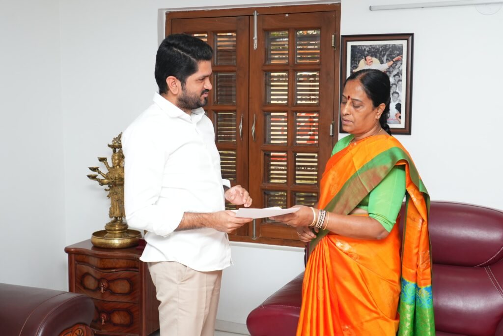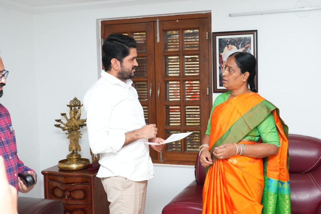 మంత్రి కొండా సురేఖకు వినతిపత్రం అందజేస్తున్న కాంగ్రెస్ నేత ప్రణవ్