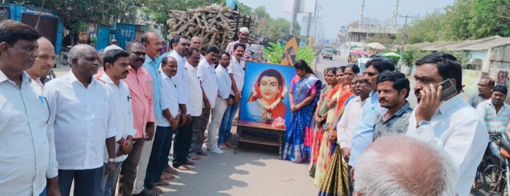 మండల యాదగిరి, స్వర్ణోదయం ప్రతినిధి హుజురాబాద్: మహాసాద్వి చదువుల తల్లి సావిత్రిబాయి పూలే 128వ వర్ధంతి హుజురాబాద్ లో జ్యోతిరావు పూలే జయంతి కమిటీ అధ్యక్షుడు ఉప్పు శ్రీనివాస్ పటేల్ ఆధ్వర్యంలో జ్యోతిరావు పూలే చౌరస్తా వద్ద ఘనంగా జరిగింది. ముందుగా సావిత్రిబాయి పూలే చిత్రపటానికి నాయకులందరూ ఘనంగా పూలమాలలు వేసి నివాళులు అర్పించారు. కార్యక్రమానికి ముఖ్యఅతిథిగా హాజరైన ఎస్సీ కార్పొరేషన్ మాజీ చైర్మన్ బండ శ్రీనివాస్ మాట్లాడుతూ సావిత్రిబాయి పూలే తన భర్త జ్యోతిరావు పూలే అడుగుజాడల్లో నడుస్తూ తాను మొదట విద్య నేర్చుకుని తర్వాత భారతదేశ మొదటి మహిళా ఉపాధ్యాయురాలుగా అవతరించి పేద ప్రజలకు మహారాష్ట్ర ప్రాంతంలో విద్యలయాలు స్థాపించి పేద వర్గాల పిల్లలకు చదువును నేర్పించారని తర్వాత జ్యోతిరావు పూలే దంపతులు వృద్ధులకు, వితంతువులకు వసతి గృహాలు ఏర్పాటు చేసి మానవత్వాన్ని చాటుకున్నారని వారి సేవలను గుర్తు చేసుకున్నారు. సావిత్రిబాయి పూలే జీవితం నేటి మహిళలకు ఆదర్శమని కొనియాడారు. ఈ కార్యక్రమంలో హుజరాబాద్ మునిసిపల్ కమిషనర్ కెంసారపు సమ్మయ్య, జ్యోతిరావు పూలే జయంతి కమిటీ చైర్మన్ ఉప్పు శ్రీనివాస్ పటేల్, ప్రధాన కార్యదర్శి రఘుచారి, మున్సిపల్ మాజీ చైర్ పర్సన్ గందే రాధిక, బిఆర్ఎస్ పార్టీ పట్టణ అధ్యక్షుడు కొలిపాక శ్రీనివాస్, అంబేద్కర్ జయంతి కమిటీ చైర్మన్ మహమ్మద్ కాలిక్ హుస్సేన్, గుడిపాటి జైపాల్ రెడ్డి, మహిళా కాంగ్రెస్ నాయకులు యేముల పుష్పలత , సొల్లు సునీత , పుల్ల రాధ, గోస్కుల నాగమణి, మల్లీశ్వరి, మాజీ కౌన్సిలర్ తాళ్లపల్లి శ్రీనివాస్, సొల్లు బాబు, కొలిపాక సమ్మయ్య, వేల్పుల రత్నం, డాక్టర్ తడికమళ్ళ శేఖర్, వేల్పుల ప్రభాకర్, ఇనుగాల శ్రీనివాస్ రెడ్డి, ఎస్కే జలీల్ , గోస్కుల మధు, రియాజ్, మొలుగు ప్రభాకర్, తులసి లక్ష్మణమూర్తి, మార్త రవీందర్, ఇల్లందుల సమ్మయ్య, ఎర్ర శ్రీధర్, బొరగాల సారయ్య, పసుల స్వామి, మిడిదొడ్డి రాజు తదితరులు పాల్గొన్నారు