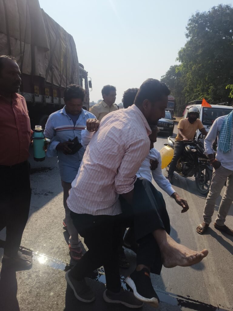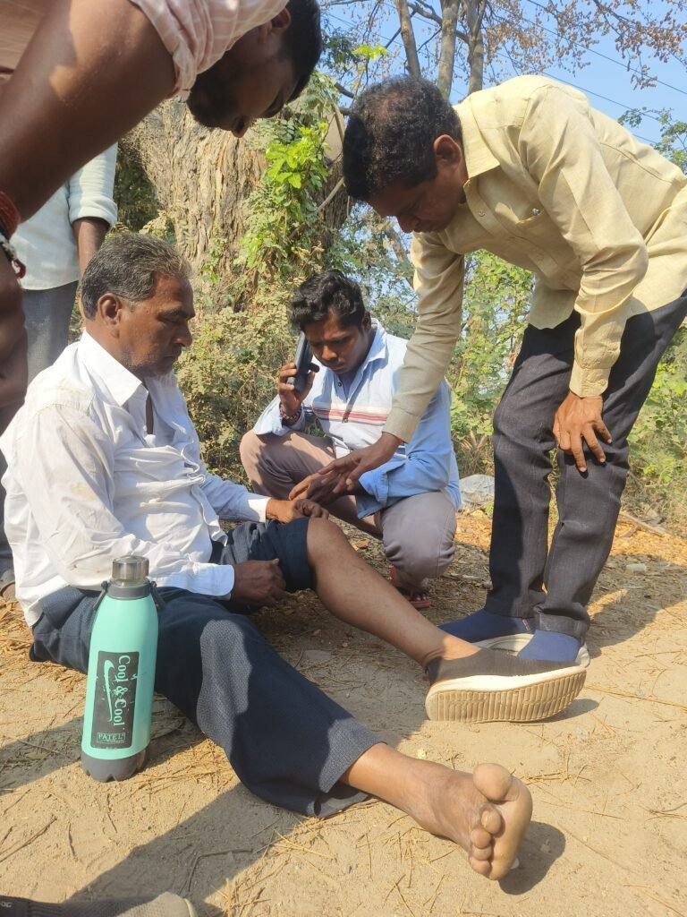మండల యాదగిరి, స్వర్ణ ఉదయం ప్రతినిధి హుజురాబాద్ (కేశవపట్నం) : మొలంగూర్ క్రాస్ రోడ్ వద్ద జరిగిన రోడ్డు ప్రమాదంలో గాయపడిన క్షతగాత్రులను చూసి కాంగ్రెస్ నాయకుడు అల్ఫోర్స్ విద్యాసంస్థల చైర్మన్ నరేందర్ రెడ్డి చలించిపోయాడు. కరీంనగర్ నుండి వర్ధన్నపేట వెళ్తున్న నరేందర్ రెడ్డి ప్రమాదంలో గాయపడ్డ మొలంగూర్ గ్రామానికి చెందిన దండు కొమురయ్యను, డానియల్ ను తన సొంత వాహనంలో హుటాహుటిన హుజురాబాద్ ప్రభుత్వ ఆసుపత్రికి తరలించి మానవత్వం చాటుకున్నాడు. కొమురయ్య నడుపుతున్న మోటార్ సైకిల్ ను పెద్దపల్లి నుండి వరంగల్ వైపు వెళ్తున్న డానియాల్ అనే వ్యక్తి రాయల్ ఇన్ ఫీల్డ్ వాహనంతో బలంగా ఢీకొట్టాడు. వివరాల్లోకి వెళితే.. శంకరపట్నం మండలం మొలంగూరు గ్రామానికి చెందిన దండు కొమురయ్య(55) మొలంగూరు నుండి హుజురాబాద్ కు వెళుతుండగా మార్గమధ్యలో మొలంగూర్ పెట్రోల్ బంకు ఎదురుగా రాజీవ్ రహదారి పైన పెద్దపల్లి నుండి వరంగల్ వెళుతున్నటువంటి రాయల్ ఎన్ఫీల్డ్ డేనియల్ దండు కొమురయ్య బైకును వెనుక నుండి ఢీకొనడంతో దండు కొమురయ్య తలకు మరియు కుడి కాలుకు దెబ్బ తగలడంతో ఒక్కసారిగా కింద పడడంతో కరీంనగర్ నుండి వర్ధన్నపేటకు వెళ్తున్న నరేందర్ రెడ్డి , క్షతగాత్రులను హుజురాబాద్ ప్రభుత్వ ఆసుపత్రికి తరలించారు. కళ్ళ ఎదుట జరిగిన ప్రమాదాన్ని తట్టుకోలేక తక్షణమే స్పందించి క్షతగాత్రులను ఆస్పత్రికి తరలించిన నరేందర్ రెడ్డిని స్థానికులు, పలువురు అభినందనలు తెలిపారు.