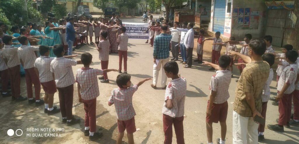 నీటి సంరక్షణ పై ప్రతిజ్ఞ చేస్తున్న విద్యార్థులు