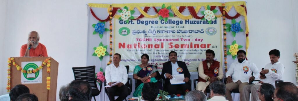తెలంగాణ రాష్ట్ర ఉన్నత విద్యా మండలి సౌజన్యంతో స్థానిక ప్రభుత్వ డిగ్రీ కళాశాల హుజురాబాద్ లో” వికసిత్ భారత్ 2047: విద్యావిధానం, భారతీయ జ్ఞానపరంపర ఏకీకరణ -ఆవిష్కరణలు & వ్యవస్థాపకత”అనే అంశంపై నిర్వహిస్తున్న రెండు రోజుల జాతీయ సదస్సు మొదటి రోజు ముఖ్య వక్తగా హాజరైన ప్రముఖ సాహితీవేత్త డాక్టర్ వసంత్ కుమార్ సదస్సు ఉద్దేశాన్ని ఆవిష్కరించే కీలక ఉపన్యాసం చేశారు. ఈ సందర్భంగా వీరు మాట్లాడుతూ సర్వశక్తి సంపూర్ణ సమ్మిళిత దేశముగా భారతదేశాన్ని ఆవిష్కరించడమే వికసిత్ భారత్ ప్రధాన ఉద్దేశం అని, ప్రతిభ ,వివేకము, విచక్షణ మరియు ఇతరులను గెలిపించడంలో నే సంతృప్తి జీవనం లభిస్తుందని, విద్యార్థులు మరియు విద్యాసంస్థలు ఎంటర్ ప్రెనూరల్ విద్యను ప్రోత్సహించినప్పుడే ఇది సాధ్యమవుతుందని పేర్కొన్నారు.