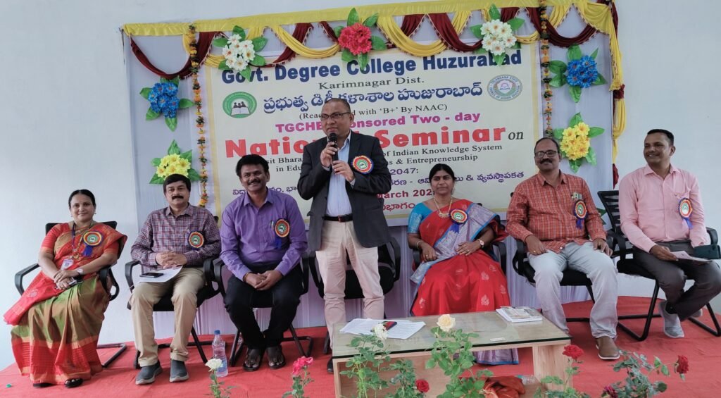 నేటితరం ప్రాచీన, ఆధునిక విజ్ఞానాల మేళవింపుతో నూతన భారతదేశం ఆవిష్కృతమవుతుందని వరంగల్ ఎన్ఐటి ప్రొఫెసర్ ఆనంద కిషోర్ కోలా అన్నారు. శుక్రవారం హుజురాబాద్ ప్రభుత్వ డిగ్రీ కళాశాలలో రెండు రోజుల జాతీయ సదస్సు ముగింపు జరిగింది. ఈ సందర్భంగా ఆయన మాట్లాడుతూ…. సాంప్రదాయ విజ్ఞానాన్ని నేర్చుకుంటూనే, ఆధునిక నైపుణ్యాలు అలవర్చుకున్నపుడే వికసిత భారత దేశం ఆవిష్కరించ బడుతుందని అన్నారు. నేను నుండి మనము, మనము నుండి విశ్వం అనే భావన లోకి వెళ్ళినప్పుడు యువ వికసిత భారత్ సాధ్యం అవుతుందని, ఇందుకోసం ప్రాచీన భారత వ్యక్తిత్వ వికాస సూత్రాలు, ఆధునిక పరిస్థితులకు అనువయించినపుడే అది సాధ్య మవుతుంది అని అన్నారు. అనంతరం శ్రీలంక, యునెస్కో చాప్టర్ డైరెక్టర్, డాక్టర్ రీతావ్యాస్ నాగర్, హాంగ్ కాంగ్ సౌత్ఇం డియన్ రీజినల్ చాప్టర్ డైరెక్టర్, ఆడిలైడ్ యూనివర్సిటీ, ఆస్ట్రేలియా డాక్టర్ గీతా సింగ్, యూకే కార్గిఫ్ యూనివర్సిటీ, డాక్టర్ వెంకట భక్తవత్సలం, కారైకుడి అలగప్ప యూనివర్సిటీ డాక్టర్ అరుణాచలం లు ఆన్లైన్ ద్వారా ప్రసంగించారు. ఈ కార్యక్రమంలో ప్రిన్సిపాల్ ఇందిరాదేవి వ్యక్తిత్వా వికాస నిపుణులు అయితే ప్రకాశం, కళాశాల అధ్యాపకులు డాక్టర్ కొత్తిరెడ్డి మల్లారెడ్డి డాక్టర్ లింగారెడ్డి, మైపాల్ రెడ్డి ,నరేందర్ రెడ్డి, రేణుక ,ఝాన్సీ రాణి సుమలత, వి.స్వరూపా రాణి ,రమ, స్వప్న, పల్లవి ,శ్రీధర్, విద్యార్థులు పాల్గొన్నారు.