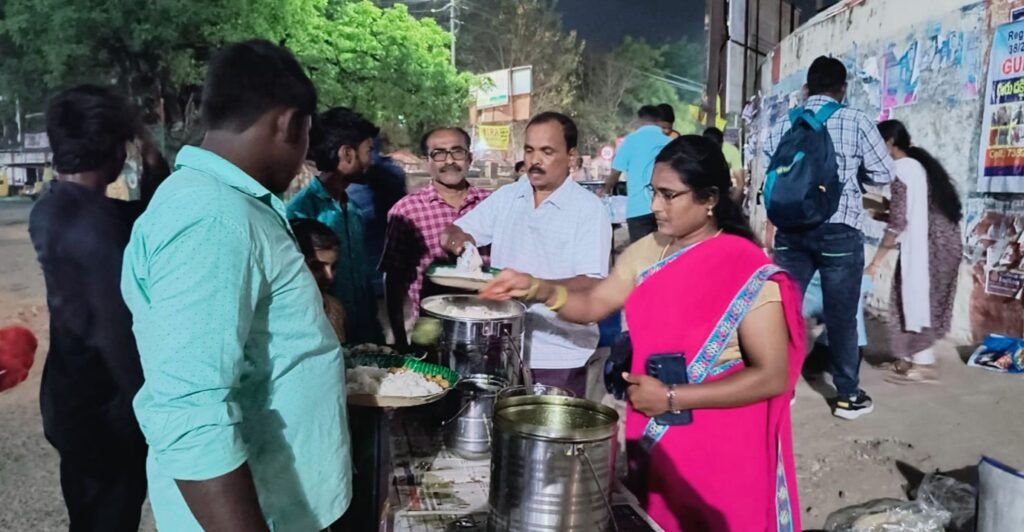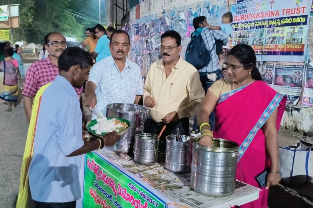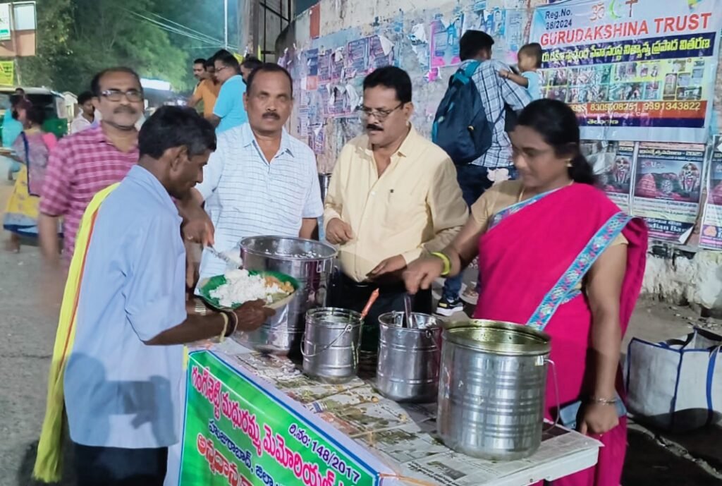 మండల యాదగిరి, స్వర్ణోదయం ప్రతినిధి హనుమకొండ (కాజీపేట): హుజురాబాద్ కు చెందిన గంగిశెట్టి మధురమ్మ మెమోరియల్ ట్రస్ట్ వారు కాజిపేట్ రైల్వే స్టేషన్ దగ్గర అన్న ప్రసాద వితరణ గావించారు. ఈ కార్యక్రమాన్ని ట్రస్టు నిర్వాహకులు గంగిశెట్టి జగదీశ్వర్ ఏర్పాటు చేశారు. వృద్ధులు, వికలాంగులు, యాచకులు, బాటసారిలు, ఆకలితో అలమటించే వారికి, రోజువారి కూలీలకు అన్నదానాన్ని ఏర్పాటు చేసి స్వయంగా వడ్డించారు. ఈ కార్యక్రమాన్ని గురుదక్షిణ స్వచ్ఛంద సంస్థ వారి సహకారంతో ఏర్పాటు చేసినట్లు గంగిశెట్టి జగదీశ్వర్ తెలిపారు. ఈ కార్యక్రమంలో రిటైర్డ్ హెడ్ మాస్టర్ లింగయ్య, బుచ్చయ్య, గురుదక్షిణ స్వచ్ఛంద సంస్థ చైర్మన్ ధనలక్ష్మి మరియు సంస్థ సభ్యులు పాల్గొన్నారు.