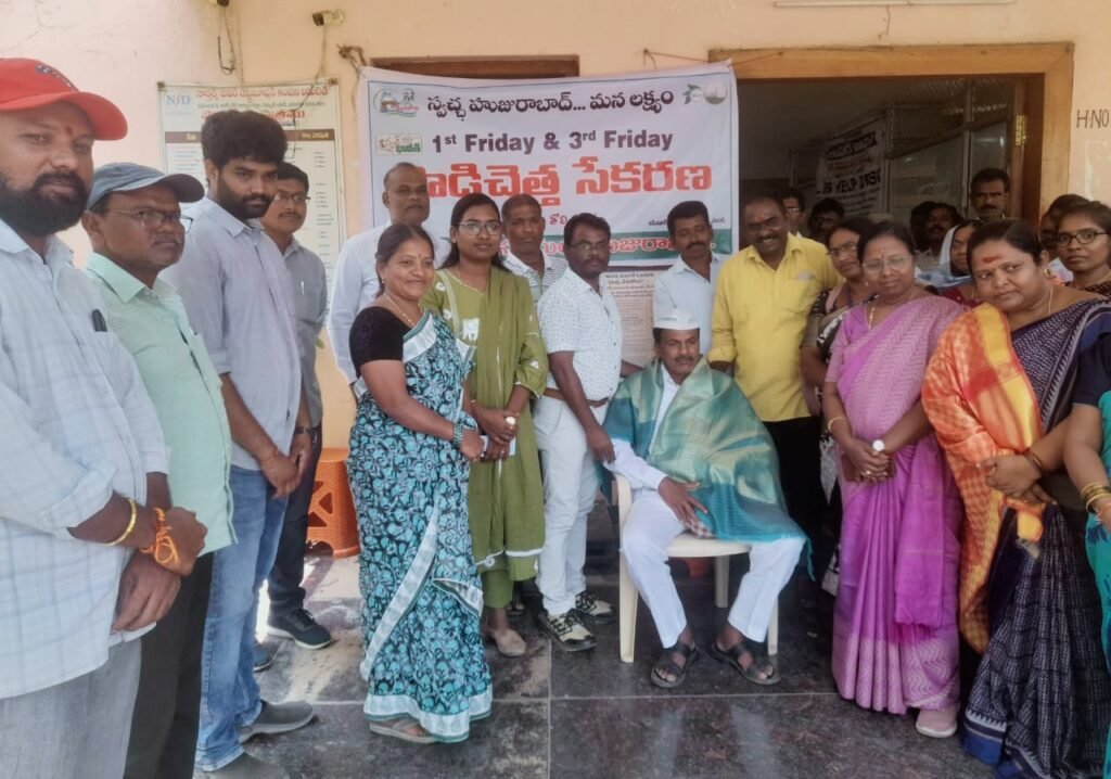 అదేవిధంగా, 1st Friday & 3rd Friday కార్యక్రమంలో భాగంగా ఈరోజు కార్యాలయ సిబ్బంది వారి గృహముల నుండి వెలువడిన పొడి చెత్తలను సేకరించి, కార్యాలయ ఆవరణలో తూకం వేసి అట్టి పొడి చెత్తను రీసైక్లింగ్ కొరకు పంపడం జరిగింది. ఈ కార్యక్రమములో చురుకుగా పాల్గొన్న వార్డు అధికారి యం రమాదేవి, సానిటరీ జవాన్ రొంటాల సుధీర్ ని మరియు తడి పొడి చెత్తలను వేరు చేయడం గురించి ప్రజలకు అవగాహన కల్పిస్తూ, తనవంతు కృషి చేస్తున్న సామాజిక కార్యకర్త నలుబాల వేణుగోపాల్ ని కమిషనర్ సమ్మయ్య శాలువాలతో సత్కరించారు. ఈ కార్యక్రమంలో కమిషనర్ కె. సమ్మయ్య, కార్యాలయ మేనేజర్ ఆర్ భూపాల్ రెడ్డి, ICDS అధికారి సుగుణ, మునిసిపల్ ఇంజనీర్ శ్రీ జి. సాంబరాజు, టౌన్ ప్లానింగ్ సూపర్ వైజర్ అశ్వినీ గాంధీ, సీనియర్ సహాయకులు MD. రషీద్, జూనియర్ సహాయకులు, వార్డు అధికారులు, ఇంచార్జి సానిటరీ ఇన్స్పెక్టర్ M. కిషన్ రావు, కార్యాలయ సిబ్బంది, మెప్మా సిబ్బంది & అంగన్ వాడి సిబ్బంది పాల్గొన్నారు.
