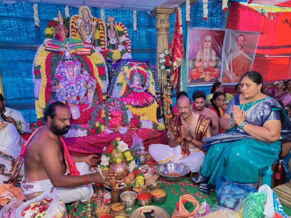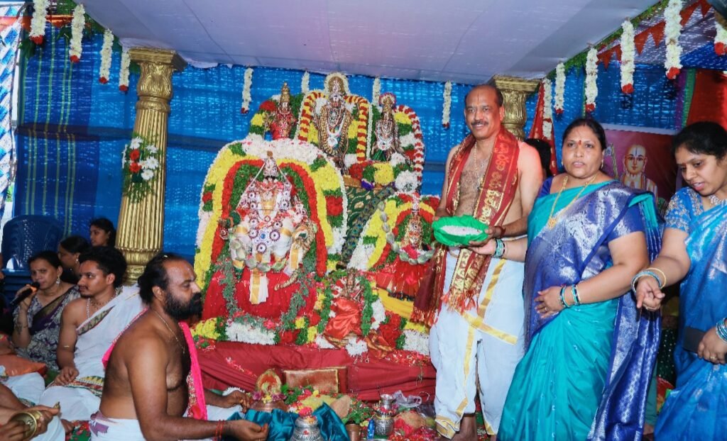 మండల యాదగిరి, స్వర్ణోదయం ప్రతినిధి హుజురాబాద్: శ్రీరామనవమి పర్వదినాన్ని పురస్కరించుకొని హుజురాబాద్ లోని శివ రామాలయంలో శ్రీ సీతారామచంద్రస్వామి కళ్యాణం ట్రస్ట్ చైర్మన్ శ్రీ క్యాస చక్రధర్ ఆధ్వర్యంలో అంగరంగ వైభవంగా జరిగింది. కమిటీ వారు వచ్చిన భక్తులకు, ఎలాంటి అసౌకర్యం కలగకుండా కమిటీ వారు చలువ పందిర్లు, మరియు కూలర్లు, మజ్జిగ మరియు స్వామివారి పానకము అందజేశారు. కళ్యాణ అనంతరం అన్నప్రసాద వితరణ మరియు భక్తులందరికీ స్వామివారి అక్షింతలు, తీర్థ ప్రసాదాలు అందజేశారు. ఈ కార్యక్రమానికి పట్టు వస్త్రాలను గందె నాగరాజు దంపతులు మరియు ముత్యాల తలంబ్రాలను క్యాస చక్రాధర్ దంపతులు మరియు పుస్తే మట్టెలు వినాయక జువెలరీస్ హన్మకొండ వారు మజ్జిగను నాగార్జున డైరీ వారు అందజేశారు. ఈ కార్యక్రమంలో పురోహితులు చెరుకుపల్లి శ్రీధర్ ఆచార్యులు, బాసర దేవాలయం పూజారి సంజయ్ చారి, రామాచారి, నిఖిల్ శర్మ మరియు కమిటీ సభ్యులు బుర్ర ఆగయ్య, కాసర్ల శ్రీహరి, భూసారపు బాపూరావు, ఆకుల సదానందం, శనిగరపు నరేందర్, క్యస కమల్ కుమార్, బుర్ర నటరాజ్ భూసారపు శ్రీనివాస్ గట్టు మహాదేవ్, గుడ్డెలుగుల చైతన్య, యథీపతి అరుణ్ కుమార్, చిదురాల నాగరాజ్ తదితరులు పాల్గొన్నారు.