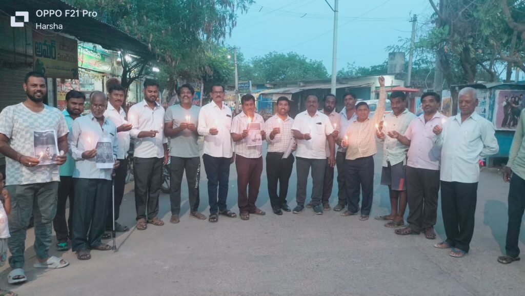 పహల్గంలో ఉగ్రవాదులు పర్యాటకులను కాల్చి చంపడానికి నిరసిస్తూ శనివారం రాత్రి హుజురాబాద్ పట్టణంలోని ఆసుపత్రి ఏరియా వద్ద పలువురు కొవ్వొత్తులతో మృతులకు నివాళులర్పించారు. ఈ సందర్భంగా వారు ఉగ్రవాదులపై ప్రభుత్వం కఠిన చర్యలు తీసుకోవాలని కోరారు. ఈ కార్యక్రమంలో మాజీ కౌన్సిలర్ తాళ్లపల్లి శ్రీనివాస్ గౌడ్, సామాజికవేత్త తిప్పారపు శ్రీనివాస్, ఎండి ఇసాక్, సి మంగళం, మహేష్ , ముద్రకోల ఆనంద్, కూడికల అశోక్, మండ సతీష్, వేలూరి గిరిధర్, చందు, భరత్ , రఘు, కార్తీక్ తదితరులు పాల్గొన్నారు.