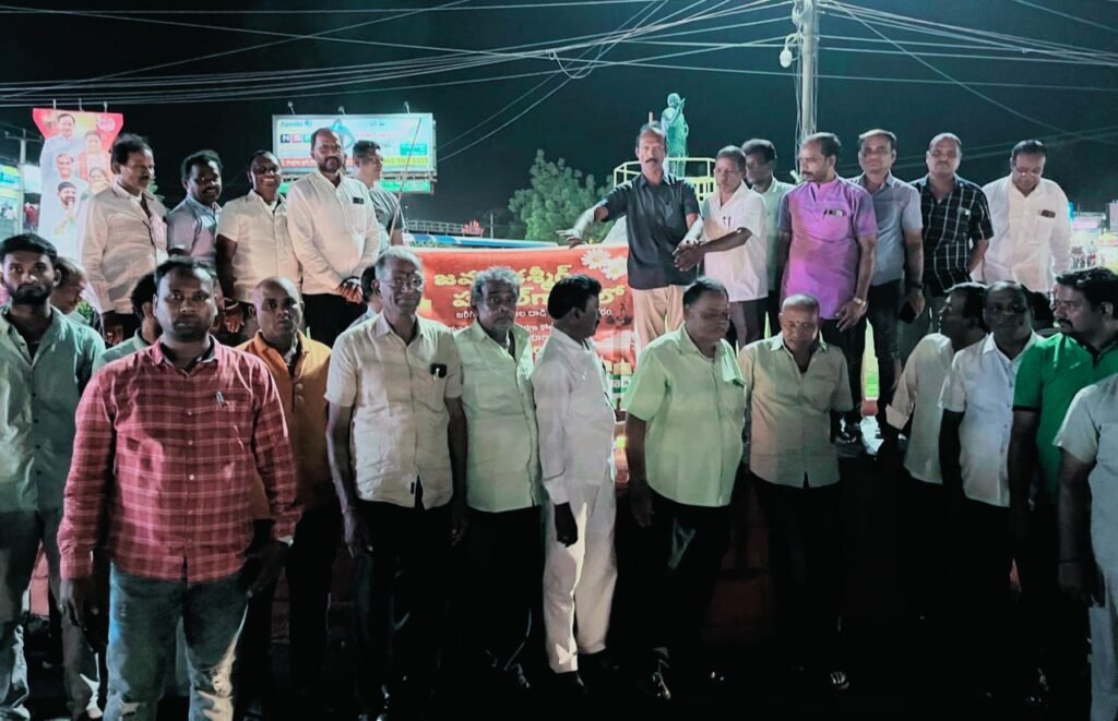 చౌరస్తాలో నివాళులర్పిస్తున్న కిరాణా వర్తక సంఘం నాయకులు..