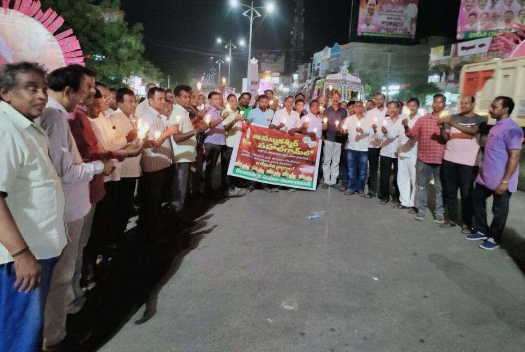 మండల యాదగిరి, స్వర్ణోదయం ప్రతినిధి హుజురాబాద్: ఇటీవల కాశ్మీర్లోని పహల్గాం లో ఉగ్రవాదులు జరిపిన దాడులలో మరణించిన వారికి హుజురాబాద్ కిరాణా వర్తక సంఘం ఆధ్వర్యంలో శనివారం కొవ్వొత్తులు వెలిగించి నివాళులర్పించారు. ఈ సందర్భంగా కిరాణా వర్తక సంఘం నాయకులు మాట్లాడుతూ దాడులకు పాల్పడి మారణ హోమం సృష్టించిన ఉగ్రవాదులను భారత ప్రభుత్వం ఏరివేయాలన్నారు. ఉగ్రవాదులను ప్రోత్సహిస్తున్న పాకిస్థాన్ కు కూడా భారత ప్రభుత్వం తగిన గుణపాఠం చెప్పాలని అన్నారు. భారత ప్రభుత్వం ఉగ్రవాద కార్యకలాపాలను నిర్వహిస్తున్న వారిని కూడా కఠినంగా శిక్షించాలన్నారు. ఇప్పటికే భారత ప్రధాని నరేంద్ర మోడీ సింధు జలాల ఒప్పందాన్ని రద్దు చేయడంతో పాటు భారతదేశంలో ఉన్న పాకిస్తానీలను తిరిగి వారి దేశానికి పంపించేలా ఆదేశాలు ఇవ్వడం హర్షినియమన్నారు. ప్రస్తుత తరుణంలో భారతదేశంలోని ప్రజలంతా ఏకతాటిపై ఉండి ఉగ్రవాదుల అణిచివేతకు సహకరించాలని అన్నారు. అనంతరం ఉగ్రవాదులకు వ్యతిరేకంగా పెద్ద ఎత్తున నినాదాలు చేస్తూ ర్యాలీ నిర్వహించారు. ఈ కార్యక్రమంలో కిరాణా వర్తక సంఘం అధ్యక్షుడు శీలా రాజేంద్ర ప్రసాద్, సెక్రటరీ యాంసాని శశిధర్, ఉపాధ్యక్షులు గంగిశెట్టి మహేష్, ప్రభాకర్, సాగర్, శ్రవణ్, విజయ్, బొల్లి శ్రీను, వేణు, పుల్లూరి శ్రీధర్, గర్రెపెల్లి శ్రీనుగుప్తా, s రవీందర్, కాచం ప్రభాకర్, శ్రీకాంత్ డిస్ట్రిబ్యూటర్ సోదరులు, వర్తక సంఘ సభ్యులు తదితరులు పాల్గొన్నారు.