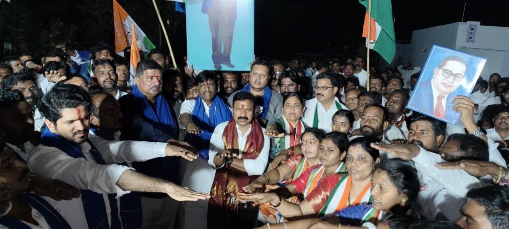 మండల యాదగిరి, స్వర్ణోదయం ప్రతినిధి హుజురాబాద్, ఏప్రిల్ 27: ఒక్క అడుగుతో మొదలై లక్షల మందితో జై బాపు, జై భీం,జై సంవిధాన్ కార్యక్రమం విజయవంతంగా వాడ, వాడలా, గ్రామ, గ్రామాన కొనసాగుతుందని ఏఐసీసీ సెక్రటరీ విశ్వనాథన్ పెరు మాళ్, మానకొండూరు శాసన సభ్యులు కవ్వంపల్లి సత్యనారాయణ అన్నారు. ఆదివారం రోజున హుజురాబాద్ మండల పరిధిలోని కనుకులగిద్ద గ్రామంలో హుజురాబాద్ కాంగ్రెస్ పార్టీ నియోజకవర్గ ఇంచార్జి వొడితల ప్రణవ్ ఆధ్వర్యంలో రాష్ట్రీయ జ్యాంగ పరిరక్షణ పేరుతో భారీ పాదయాత్ర నిర్వహించారు. అనంతరం వారు మాట్లాడుతూ బిజెపి అవలంబిస్తున్న రాజ్యాంగ వ్యతిరేక విధానాల వల్ల దేశ ప్రజాస్వామ్యానికి ప్రమాదం వాటిల్లుతుందని, కాంగ్రెస్ పార్టీ మాత్రమే దేశాన్ని, ప్రజా స్వామ్యాన్ని రక్షిస్తుందని అన్నారు. దేశంలో అన్ని రాష్ట్రాల కంటే తెలంగాణలో జై బాపు, జై భీం, జై సంవిధాన్ కార్యక్రమం విజయవంతంగా సాగుతుందని, హుజురాబాద్ నియోజకవర్గం ముందు వరసలో ఉందని అన్నారు. ఈ సందర్భంగా భారీ ఎత్తున కార్యక్రమాన్ని నిర్వహించిన ప్రణవ్ కు అభినందనలు తెలియజేశారు. అనంతరం రాజ్యాంగ పరిరక్షణ తామంతా కట్టుబడి ఉంటామని ప్రతిజ్ఞ చేశారు. పాహెల్గాం ప్రాంతంలో జరిగిన ఉగ్రదాడిలో మరణించిన వారికి సంతాపం తెలిపి, కొవ్వొత్తులతో ర్యాలీ నిర్వహించారు. ఈ కార్యక్రమంలో జిల్లా గ్రంథాలయ సంస్థ చైర్మన్ సత్తు మల్లేష్, కూడా చైర్మన్, హుజురాబాద్ రాజ్యాంగ పరిరక్షణ ఇంచార్జి ఇనుగాల వెంకట రామిరెడ్డి, పరిరక్షణ పాదయాత్ర కరీంనగర్ జిల్లా ఇంచార్జ్ రుద్ర సంతోష్, కరీంనగర్ డిసిసి వర్కింగ్ ప్రెసిడెంట్ పద్మాకర్ రెడ్డి, ఏస్పి సెల్ జిల్లా అధ్యక్షుడు శ్రవణ్ నాయక్, మండల శాఖ అధ్యక్షులు, గ్రామ అధ్యక్షులు, మార్కెట్ చైర్మెన్లు, డైరెక్టర్ల, ఇళ్ళంధకుంట దేవస్థాన చైర్మెన్, డైరెక్టర్లు, హుజురాబాద్ కాంగ్రెస్ నాయకులు, మహిళా నాయకులు, యూత్ కాంగ్రెస్ నాయకులు భారీ స్థాయిలో పాల్గొన్నారు.