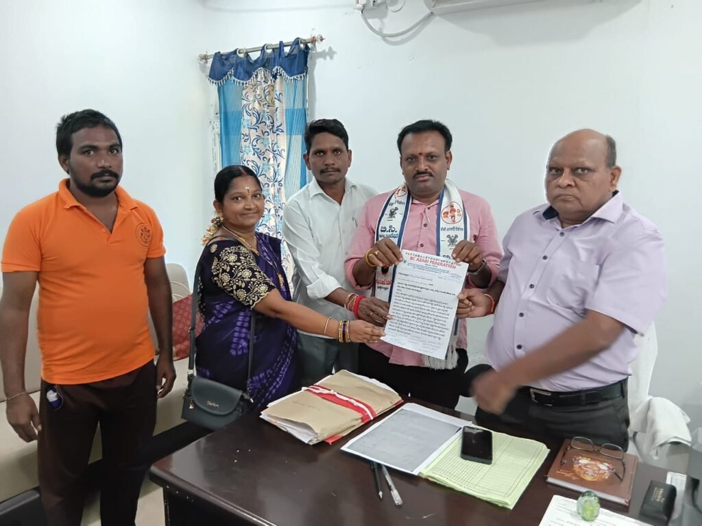 ఆర్డీవో కార్యాలయ ఏఓ కి వినతి పత్రం అందజేస్తున్న బీసీ ఆజాది ఫెడరేషన్ జిల్లా కన్వీనర్ చిలుకమారి శ్రీనివాస్, ఇతర నాయకులు
