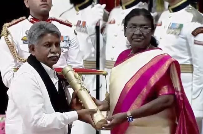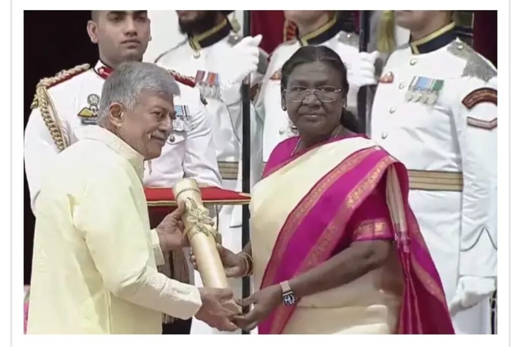 పద్మభూషణ్ అవార్డును కన్నడ నటుడు అనంత్ నాగ్ అందుకుంటున్న దృశ్యం.