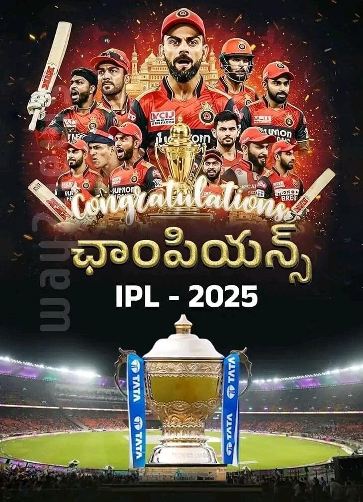 స్వర్ణోదయం ప్రతినిధి హైదరాబాద్: IPL 2025 కు ఇక తెరపడింది. అహ్మదాబాద్(Ahmedabad)లోని నరేంద్ర మోడీ స్టేడియం(Narendra Modi Stadium)లో జరిగిన ఫైనల్ మ్యాచ్లో బెంగళూరు జట్టు విజయం సాధించింది. ఈ గెలుపుతో జట్టు పద్దెనిమిదేళ్ల కల నెరవేరినట్లైంది. ఐపీఎల్ కప్పు అందుకునేందుకు పంజాబ్ కింగ్స్(Punjab Kings), రాయల్ ఛాలెంజ్ బెంగళూరు(Royal Challengers Bangalore) జట్లు గత 18 ఏళ్లుగా నిరీక్షిస్తున్నాయి. రెండు జట్లు కూడా మొదటిసారి ఫైనల్కు చేరుకుని తలపడ్డాయి. దీంతో ఇరు జట్ల మధ్య విజయం చివరి వరకు దోబూచులాడింది. కానీ చివరికి బెంగళూరు జట్టునే విజయం వరించింది.