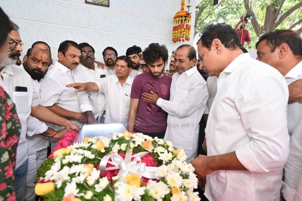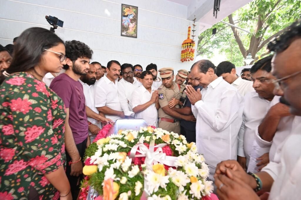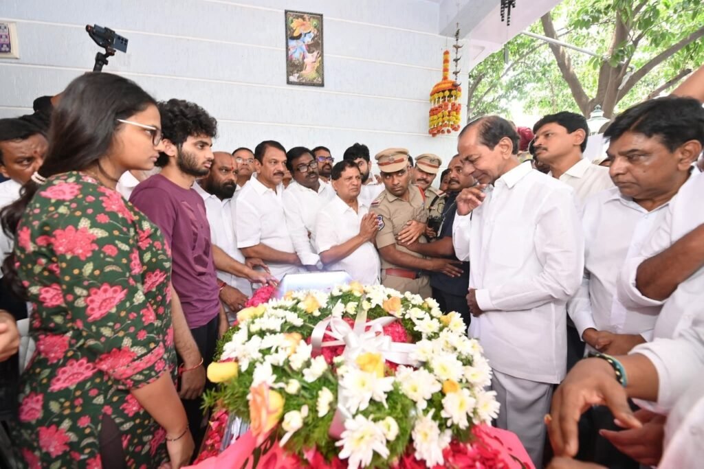మృతుడు గోపీనాథ్ మృతదేహంపై పూలమాలలు వేసి నివాళులర్పించి, ఉద్వేగానికి గురవుతున్న కేసీఆర్..