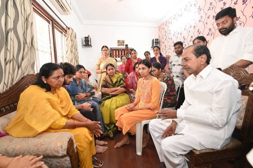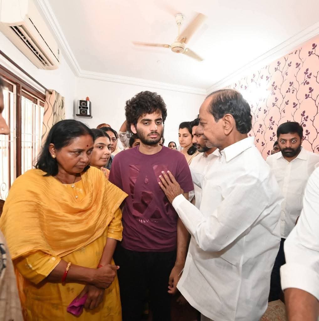 గోపినాథ్ భార్య, పిల్లలను ఓదార్చిన అనంతరం సంతాపం వ్యక్తం చేస్తున్న కేసీఆర్..
