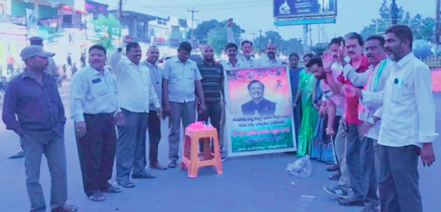 వివేక్ కు మంత్రి పదవి రావడం పట్ల హర్షం వ్యక్తం చేస్తూ కేక్ కట్ చేసి, స్వీట్లు పంపిణీ చేస్తున్న మాల మహానాడు నాయకులు..