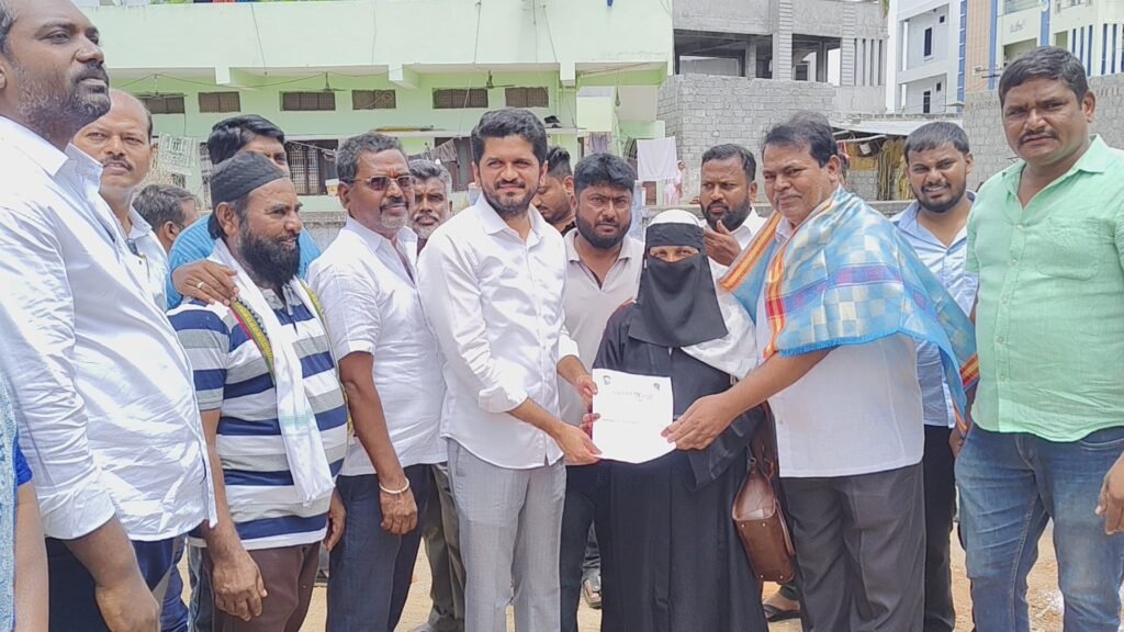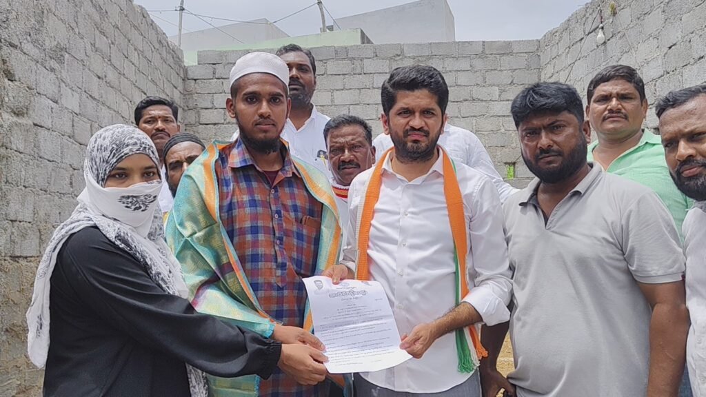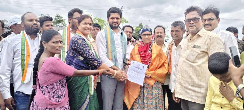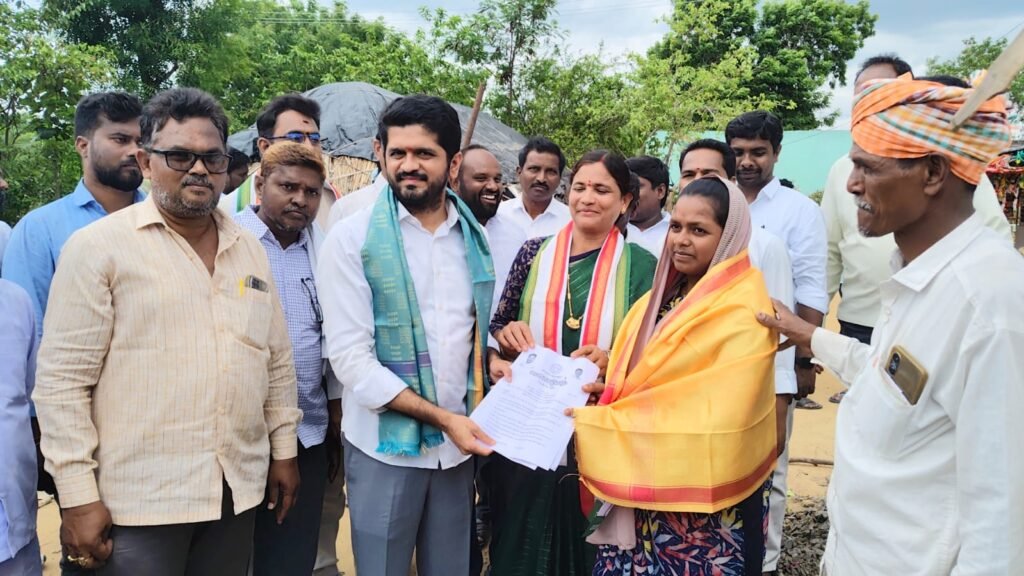 కమలాపూర్ కాసింపల్లిలో ఇందిరమ్మ పట్టాలను అందజేస్తున్న కాంగ్రెస్ నేత ప్రణవ్