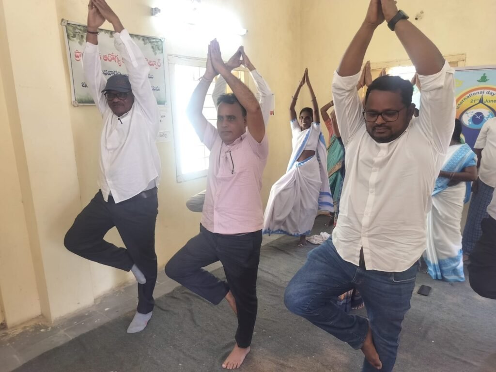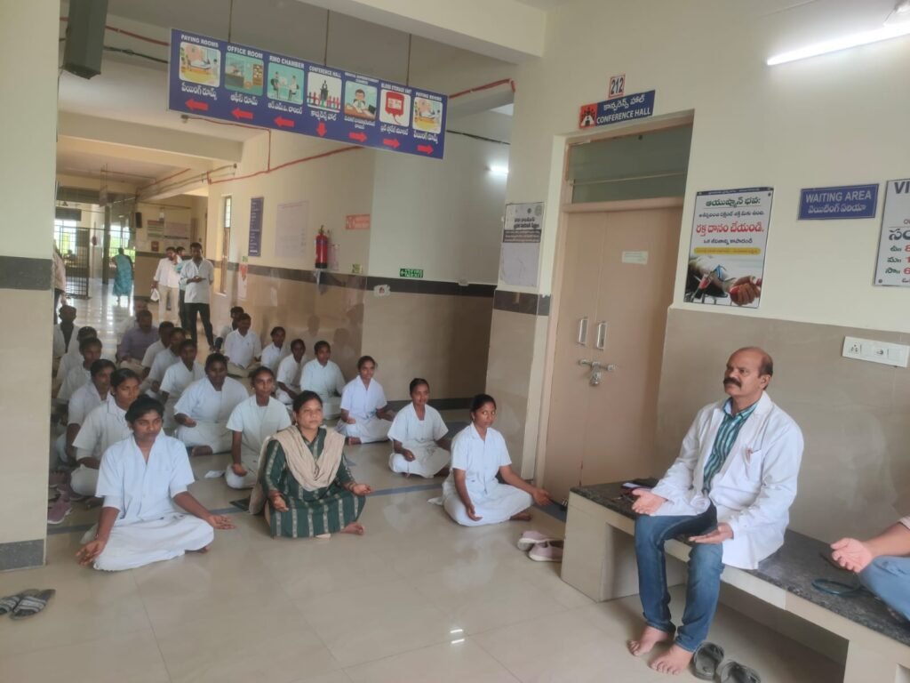 ఏరియా ఆసుపత్రిలో సిబ్బందికి యోగ నిర్వహిస్తున్న సూపరిండెంట్ నారాయణరెడ్డి..