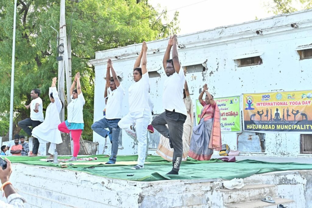 మండల యాదగిరి, స్వర్ణోదయం ప్రతినిధి, హుజురాబాద్: నేటి యాంత్రిక జీవితంలో ఆరోగ్య పరిరక్షణ కోసం తప్పనిసరిగా ప్రతి వ్యక్తి ఆలోచించాల్సిన అవసరం ఉందని, యోగాతో అందం, ఆనందం, ఆరోగ్యం, మానసిక ప్రశాంతత లభిస్తుందని హుజురాబాద్ ఏసిపి వాసంశెట్టి మాధవి అన్నారు. శనివారం హుజురాబాద్ పట్టణంలో అంతర్జాతీయ 11వ యోగా దినోత్సవ వేడుకలు ఘనంగా జరిగాయి. హుజురాబాద్ పట్టణంలో ప్రభుత్వ ఉన్నత పాఠశాల మైదానంలో, కోర్టు సముదాయ భవనంలో, సబ్ జైల్లో, ప్రభుత్వ ఏరియా ఆసుపత్రిలో, చేల్పూర్ ఉన్నత పాఠశాలలో, సింగపూర్ కిట్స్ కాలేజీలో, బిజెపి ఆధ్వర్యంలో, వికాస తరంగిణి ఆధ్వర్యంలో, డిప్యూటీ డిఎంహెచ్వో ఆధ్వర్యంలో ఘనంగా జరిగాయి. ప్రభుత్వ ఉన్నత పాఠశాల మైదానంలో జరిగిన కార్యక్రమంలో ఏసీపీ మాట్లాడుతూ…భగవంతుడు మానవజన్మ మనకు ఇచ్చినందుకు ఆరోగ్యం కాపాడుకోవాలని ఆరోగ్యానికి మించిన ధనం లేదని అన్నారు ఒకసారి మనిషి అనారోగ్యానికి గురైతే ఆ వ్యక్తితో పాటు ఆ కుటుంబ సభ్యులు ఆర్థికంగా మానసికంగా ఆరోగ్యపరంగా నష్టపోతారని అన్నారు అందుకే ప్రతి ఒక్కరూ యోగ జీవన విధానంలో భాగం కావాలని అప్పుడే ప్రతి మనిషి ఆరోగ్యంగా ఉండగలుగుతారని అన్నారు. మున్సిపల్ కమిషనర్ కేంసారపు సమ్మయ్య మాట్లాడుతూ… యోగా మన జీవిత గమనాన్ని మారుస్తుందని, మన జీవితంలో ఒక భాగంగా యోగాను మార్చుకోవాలని అన్నారు. ఈ కార్యక్రమంలో టౌన్ సిఐ టి కరుణాకర్, యోగా గురువు దేవునూరి శ్రీనివాస్, ఏరియా ఆసుపత్రి సూపరిండెంట్ డాక్టర్ ఎన్ నారాయణరెడ్డి, డాక్టర్ ప్రసాద్ రావు, డాక్టర్ రవీందర్రావు, డాక్టర్ షబానా అజీజ్, మేనేజర్ భూపాల్ రెడ్డి, వాకర్స్ అధ్యక్షులు అధ్యక్షులు హరి ప్రసాద్, ప్రధాన కార్యదర్శి మతిన్, ఉపాధ్యక్షుడు మండల యాదగిరి తదితరులు పాల్గొన్నారు.