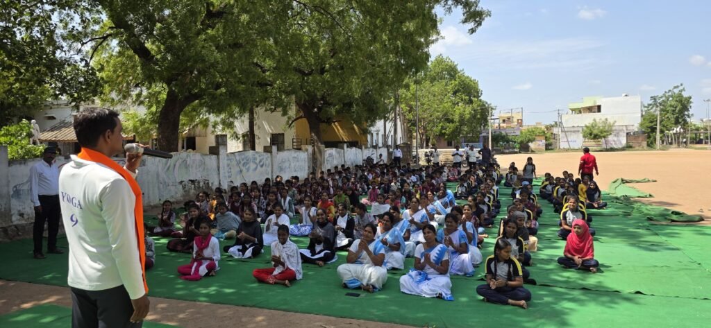 ప్రభుత్వ ఉన్నత పాఠశాల క్రీడామైదానంలో బల్దియా- వాకర్ ఆధ్వర్యంలో నిర్వహించిన యోగ డే వేడుకలు..