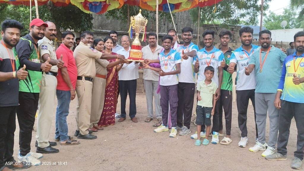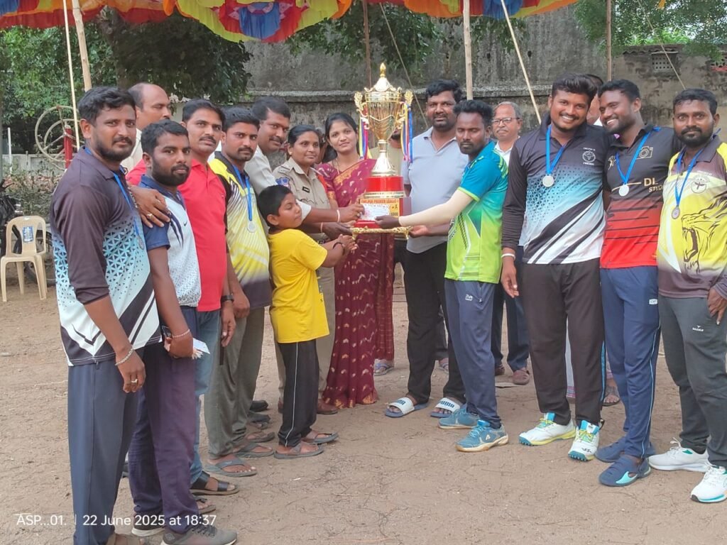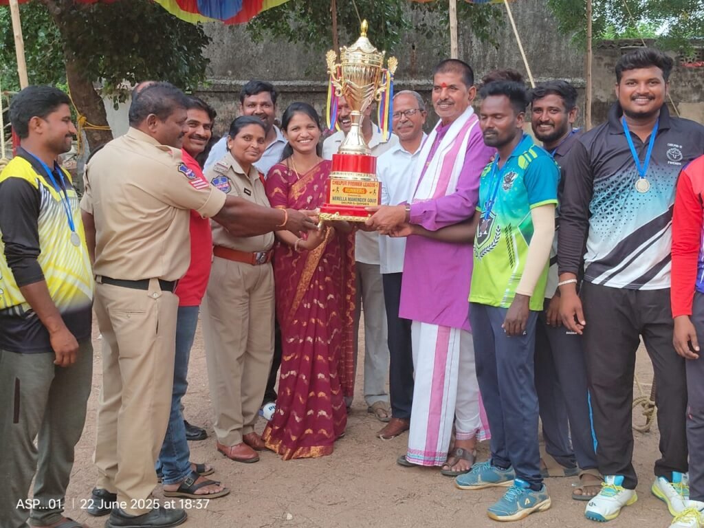 క్రికెట్ విజేతలకు కప్పు బహుకరిస్తున్న బిఆర్ఎస్ నాయకురాలు శిరీష..