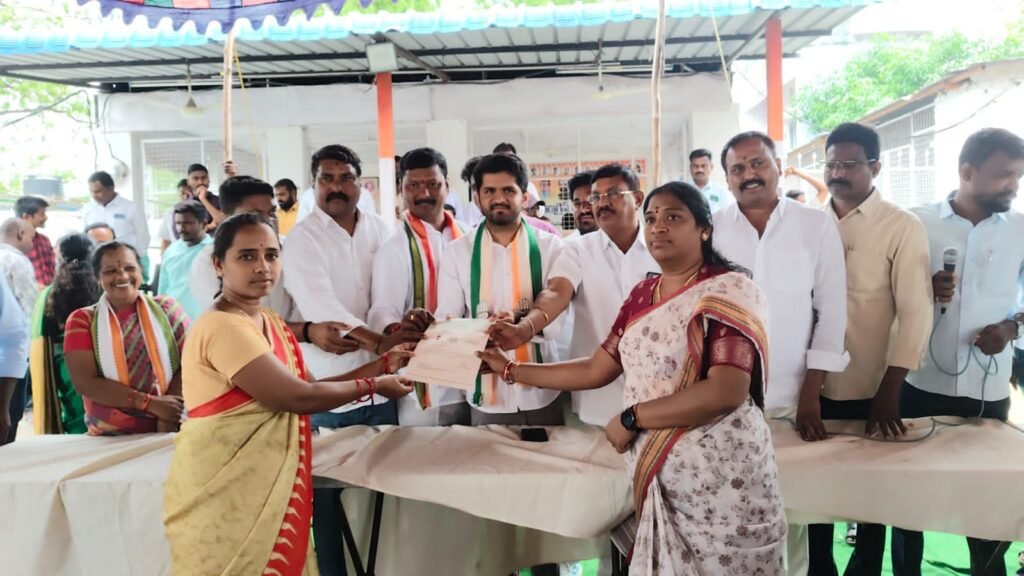 లబ్ధిదారులకు సీఎంఆర్ఎఫ్ చెక్కులు పంపిణీ చేస్తున్న కాంగ్రెస్ నేత ప్రణవ్