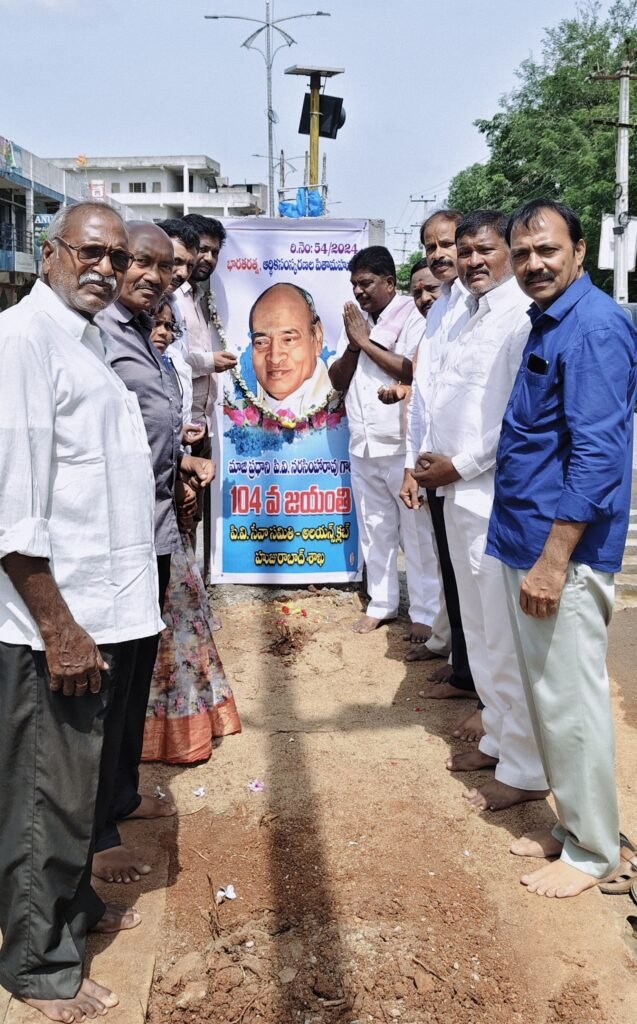 మండల యాదగిరి, స్వర్ణోదయం ప్రతినిధి హుజురాబాద్: భారత రత్న, మాజీ ప్రధాని పాములపర్తి వెంకట నరసింహారావు 104వ జయంతిని శనివారం పట్టణంలోని సైదాపూర్ క్రాస్రోడ్డు వద్ద ఘనంగా నిర్వహించారు. పీవీ సేవా సమితి, అలయన్స్ క్లబ్ ఆధ్వర్యంలో జరిగిన ఈ కార్యక్రమంలో పీవీ చిత్రపటానికి పూలమాలలు వేసి నివాళులు అర్పించారు. ఈ సందర్భంగా పీవీ సేవా సమితి అధ్యక్షుడు తూము వెంకటరెడ్డి, మాజీ ఎస్సీ కార్పొరేషన్ చైర్మన్ బండ శ్రీనివాస్, న్యాయవాది ముక్కెర రాజు, ఐఎంఏ డాక్టర్ రామలింగరెడ్డి, కాంగ్రెస్ సీనియర్ నాయకుడు తోట రాజేంద్ర ప్రసాద్, మాట్లాడుతూ…‘‘దేశాభివృద్ధిలో పీవీ నరసింహారావు పాత్ర ఎనలేనిది. ప్రపంచం గర్వించే మేధావి మన ప్రాంత వాస్తవ్యుడిగా ఉండడం గర్వకారణం. ఆయన సేవలకు గుర్తింపుగా కేంద్ర ప్రభుత్వం భారతరత్న అందించడం హర్షదాయకం” అని తెలిపారు. ప్రజల ఆకాంక్ష మేరకు హుజురాబాద్లో పీవీ విగ్రహాన్ని ఏర్పాటు చేయాల్సిన అవసరం ఉందని పేర్కొన్నారు. ఈ కార్యక్రమంలో అలయన్స్ క్లబ్ అధ్యక్షుడు బి మనోజ్, డాక్టర్లు తోగరు విద్యాసాగర్, ప్రదీప్ రావు, ఏఎస్ఐ బండ సంపత్ రెడ్డి, న్యాయవాది శ్రీనివాస్, పల్కల ఈశ్వర్ రెడ్డి, వేల్పుల రత్నం, మురికి గౌరీశంకర్, రావుల తిరుపతి రెడ్డి తదితరులు పాల్గొన్నారు.